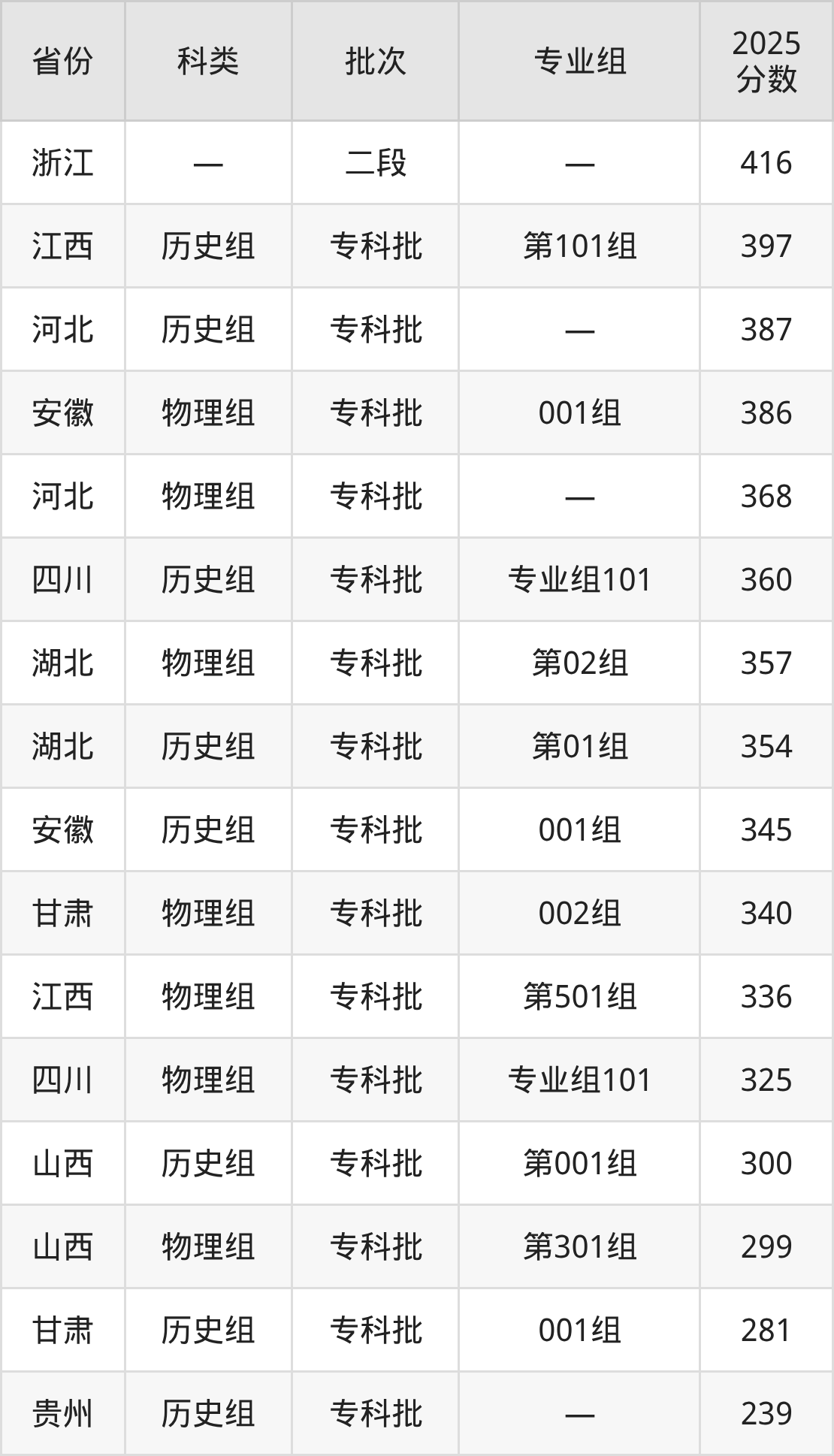 而浙江地区考生的分数门槛最高,2025年天门职业学院在浙江招生最低分为416分,考生至少要超二段线148分才有可能被录取。