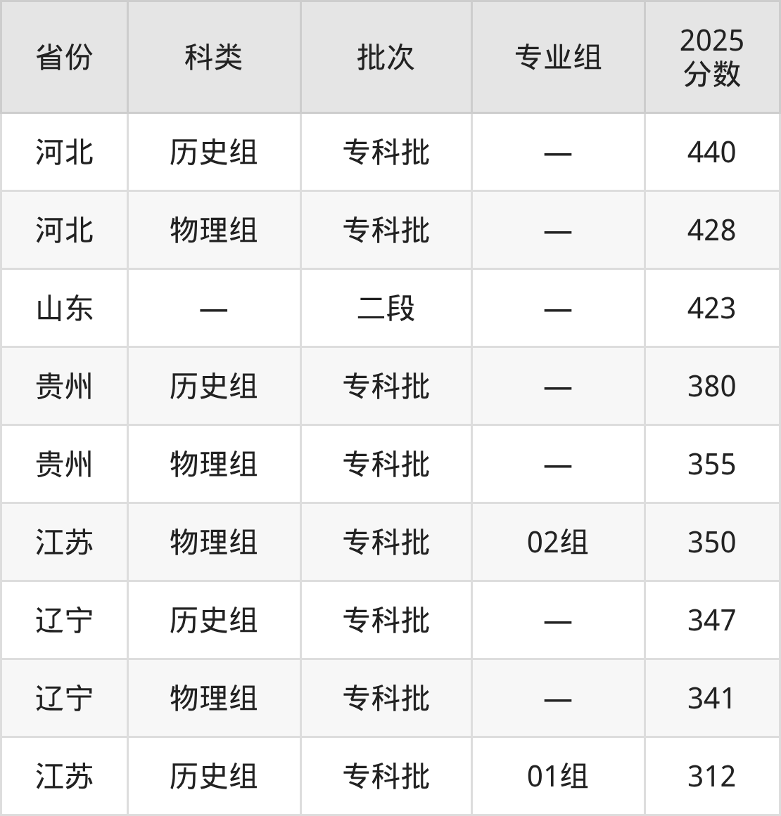 下面是河南工业贸易职业学院2025年在全国各省的录取分数线一览表,供参考: