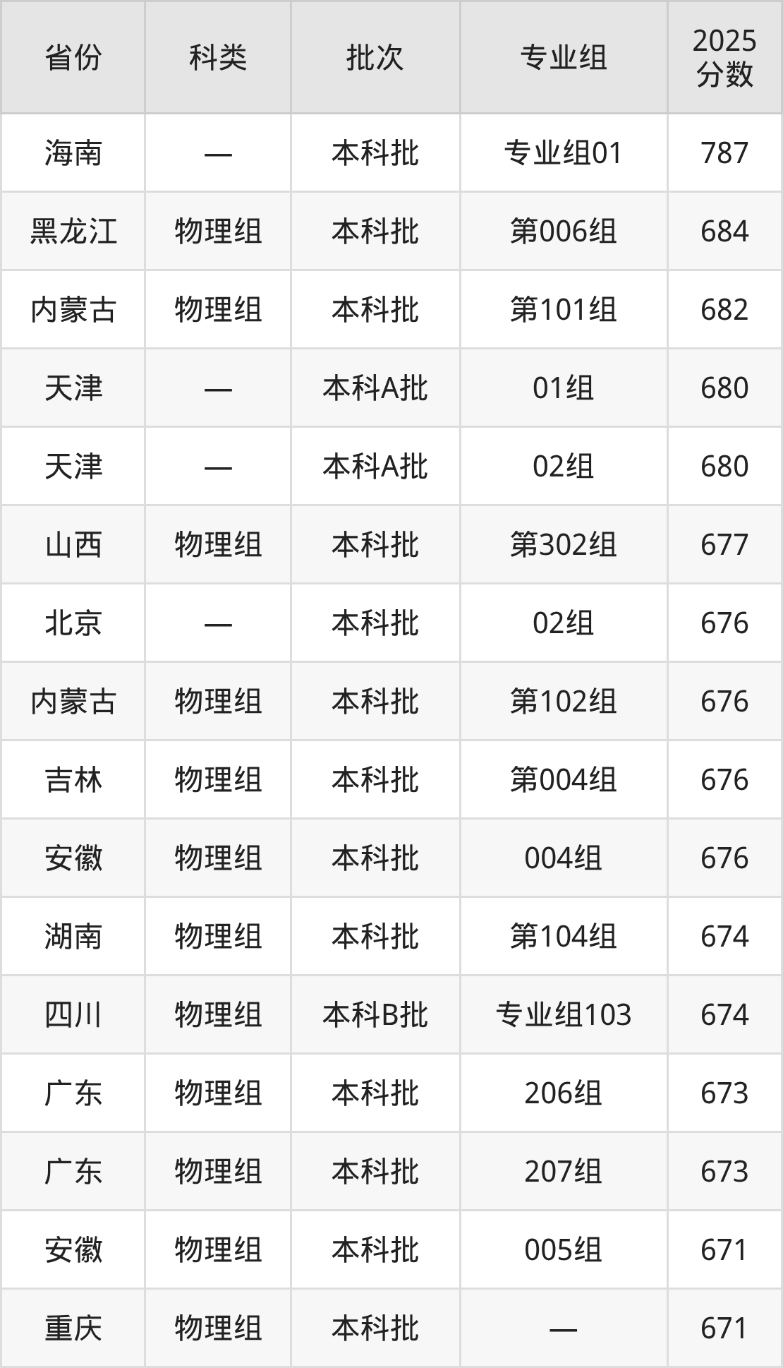 而海南地区考生的分数门槛最高,2025年哈尔滨工业大学专业组01在海南招生最低分为787分,考生至少要超本科线307分才有可能被录取。