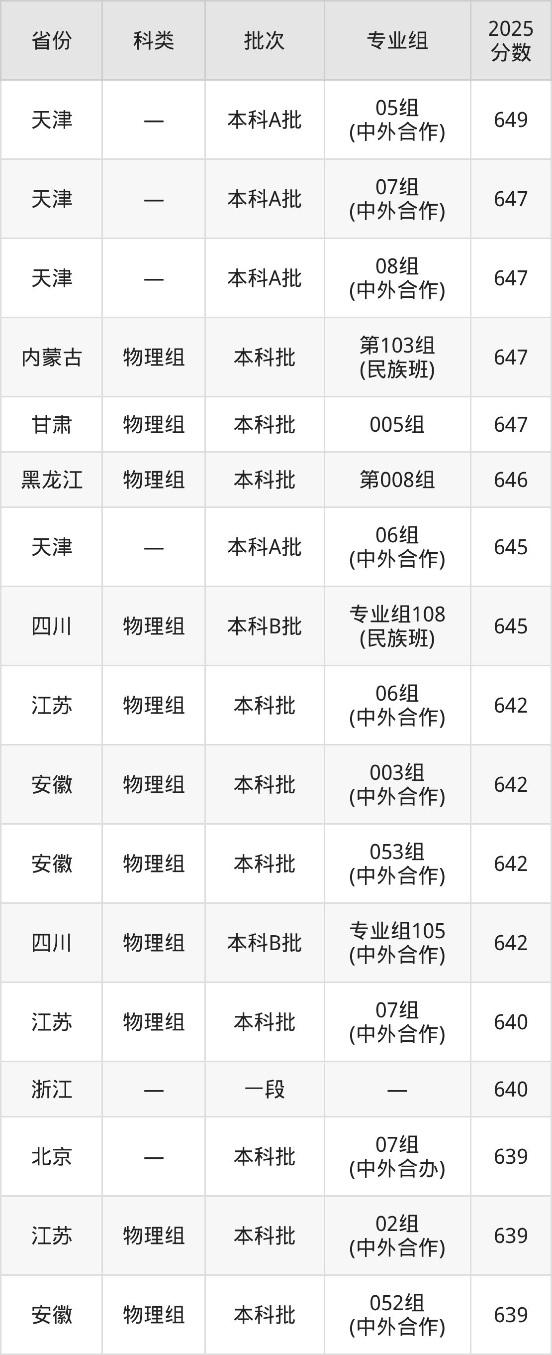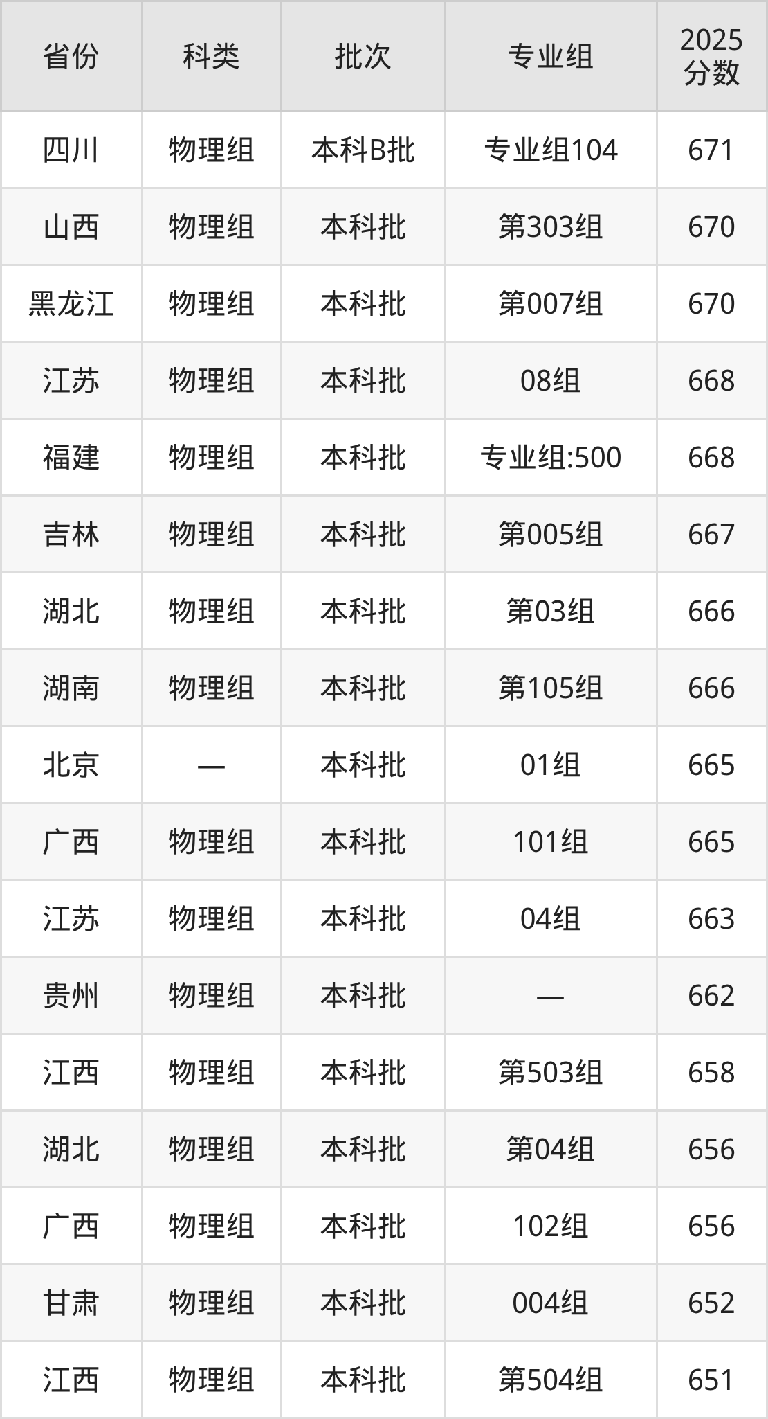 下面是哈尔滨工业大学2025年在全国各省的录取分数线一览表,供参考: