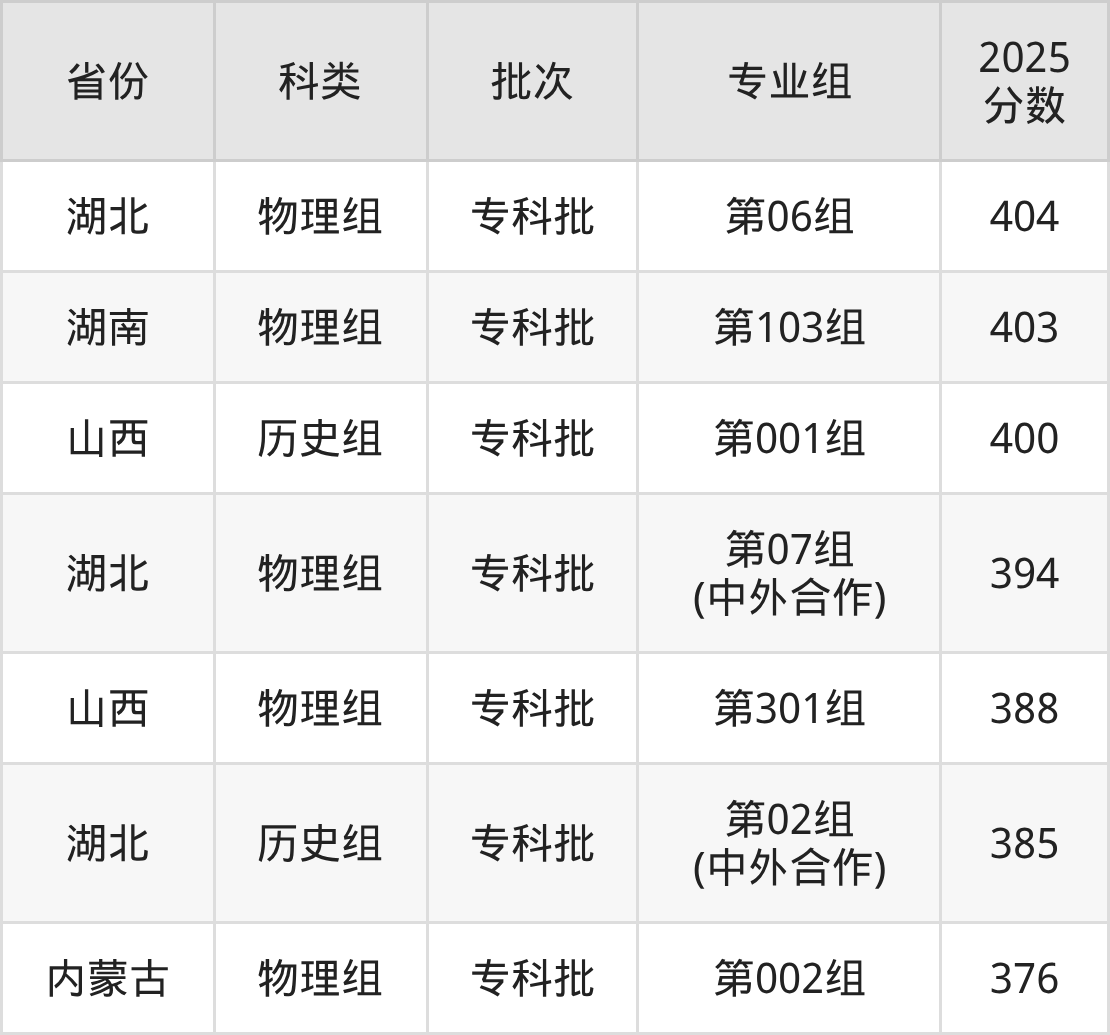 湖北财税职业学院2026年录取分数需在高招结束官方数据公布后更新,2026届有意向报考该校的同学,可以在填报志愿时参考湖北财税职业学院2025年录取分数线: