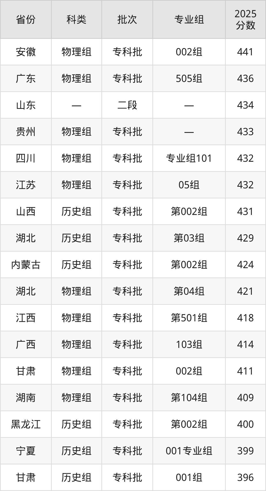 2025年江苏海事职业技术学院在全国普通批次招生的录取分数范围位于354~490分之间,其中省内分数范围为432分~487分,物理组最低分专业组为“05组”,考生432分即可报考,历史组最低分专业组为“02组”,考生451分即可报考。