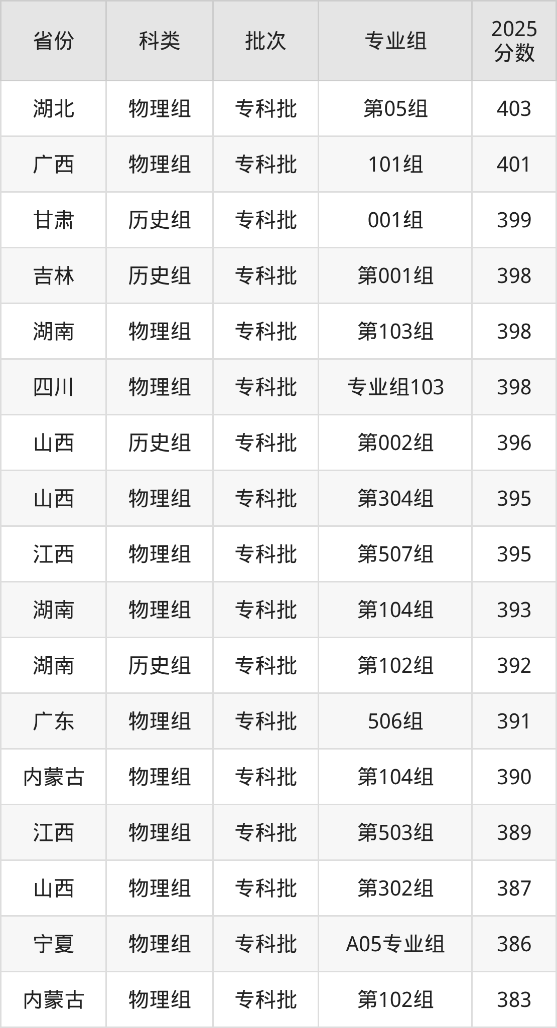 下面是江西医学高等专科学校2025年在全国各省的录取分数线一览表,供参考: