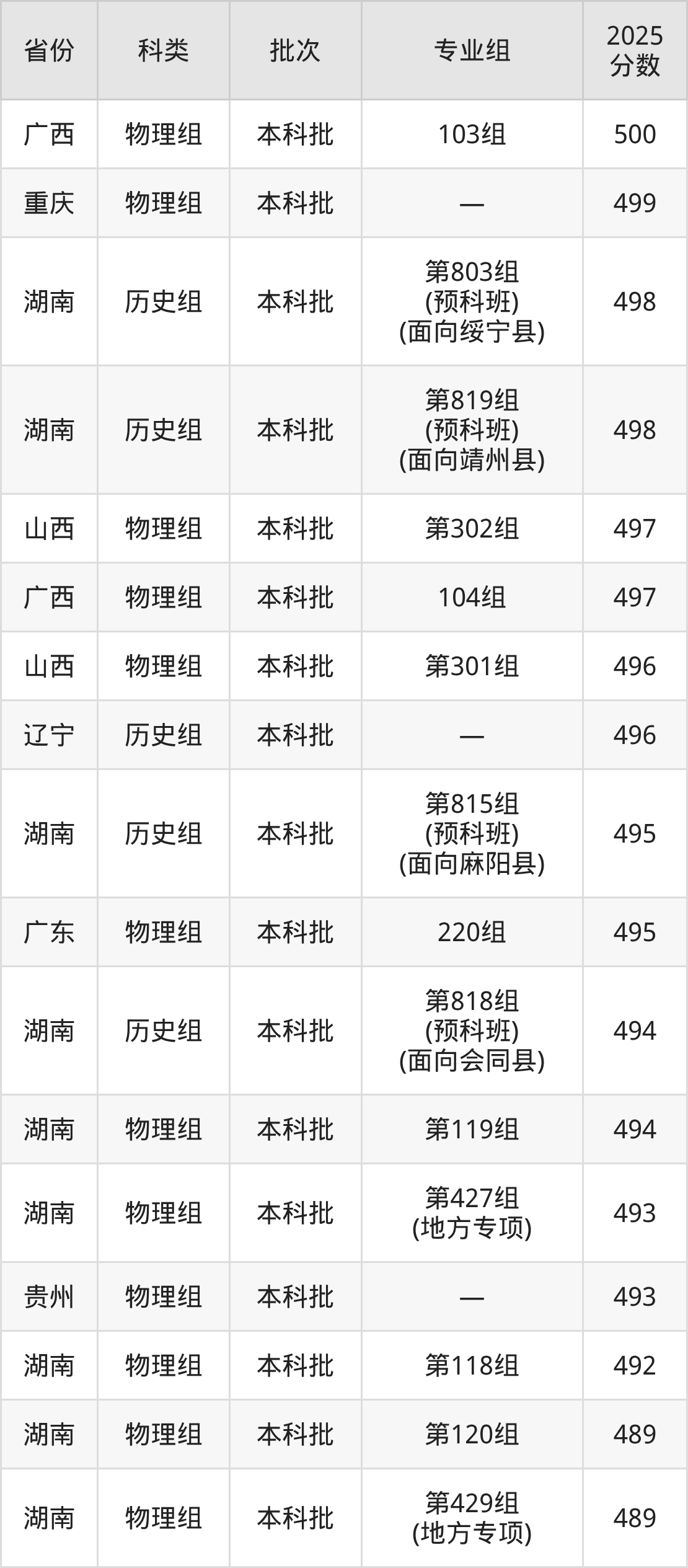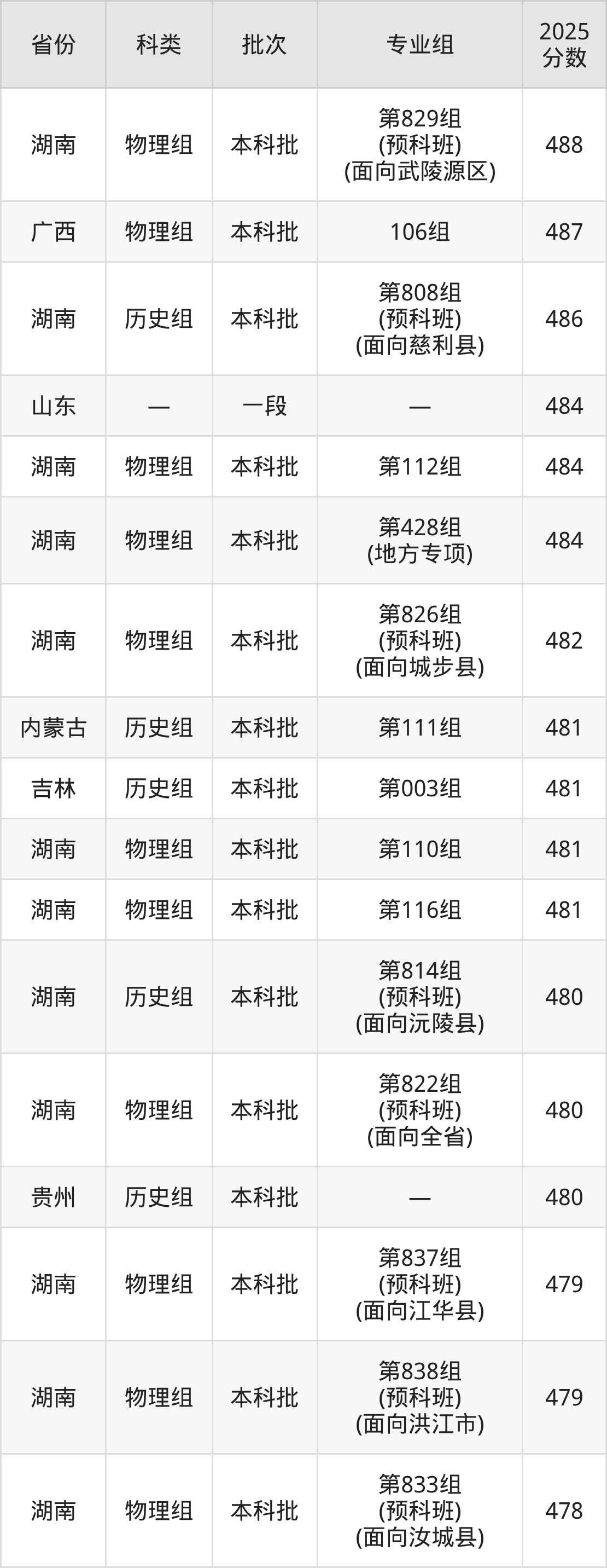 而海南地区考生的分数门槛最高,2025年吉首大学专业组01在海南招生最低分为566分,考生至少要超本科线86分才有可能被录取。