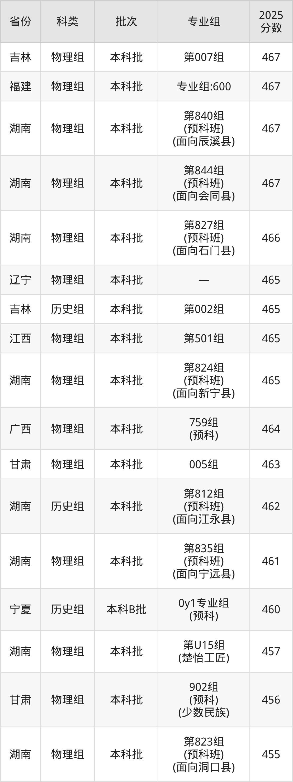 下面是吉首大学2025年在全国各省的录取分数线一览表,供参考: