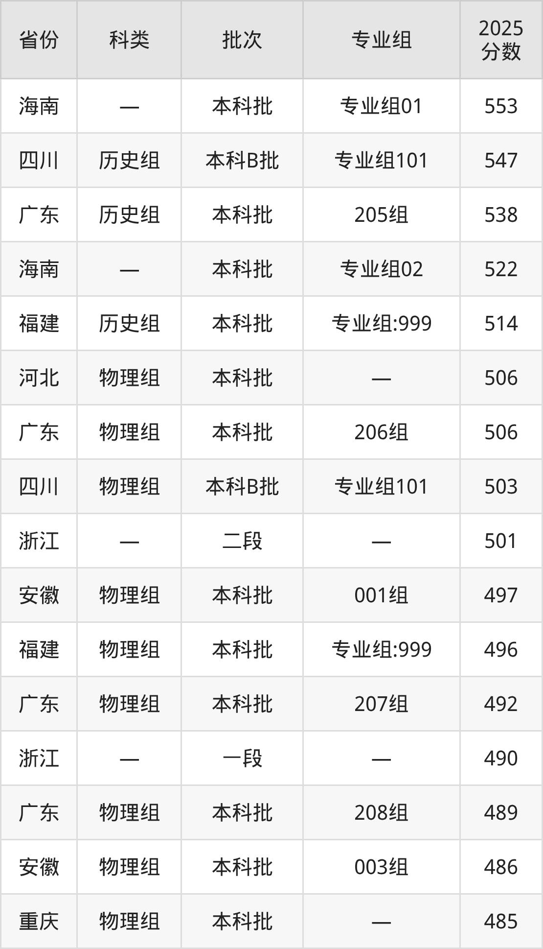 而海南地区考生的分数门槛最高,2025年广西中医药大学赛恩斯新医药学院专业组01在海南招生最低分为553分,考生至少要超本科线73分才有可能被录取。