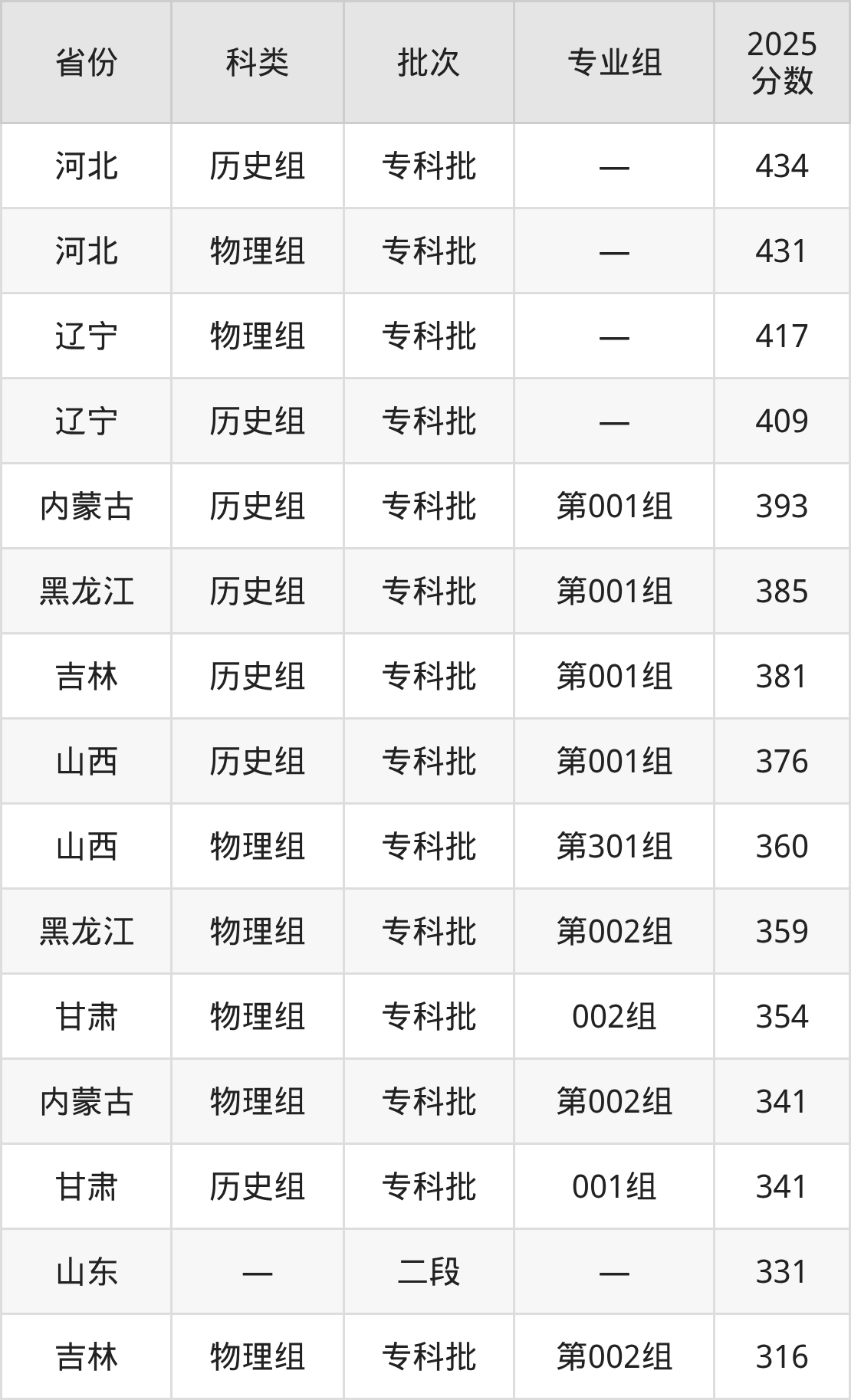 而河北地区历史组考生的分数门槛最高,2025年山东药品食品职业学院在河北招生最低分为434分,考生至少要超专科线234分才有可能被录取。