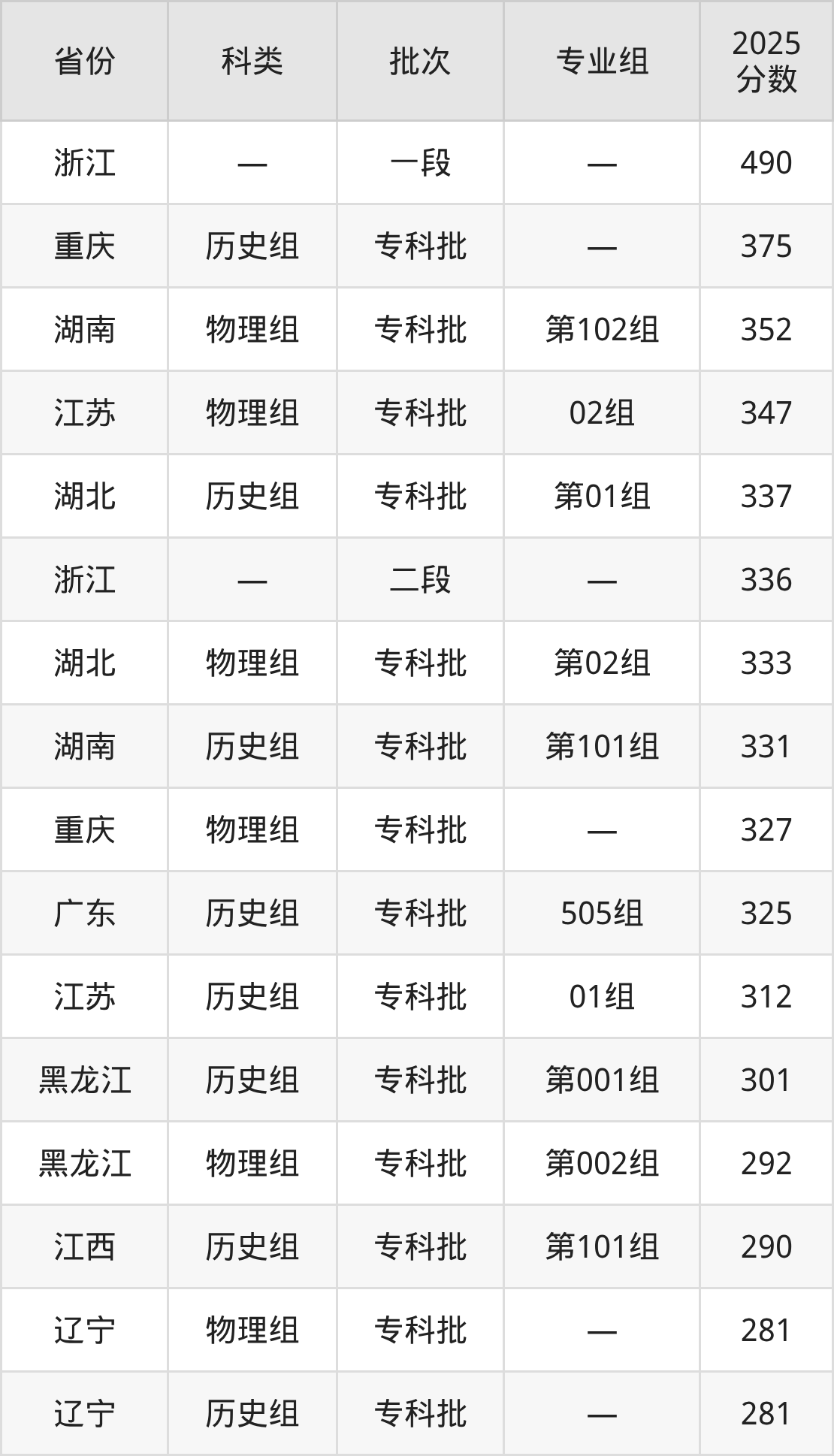 而浙江地区考生的分数门槛最高,2025年上海邦德职业技术学院在浙江招生最低分为490分,考生至少要超一段线0分才有可能被录取。