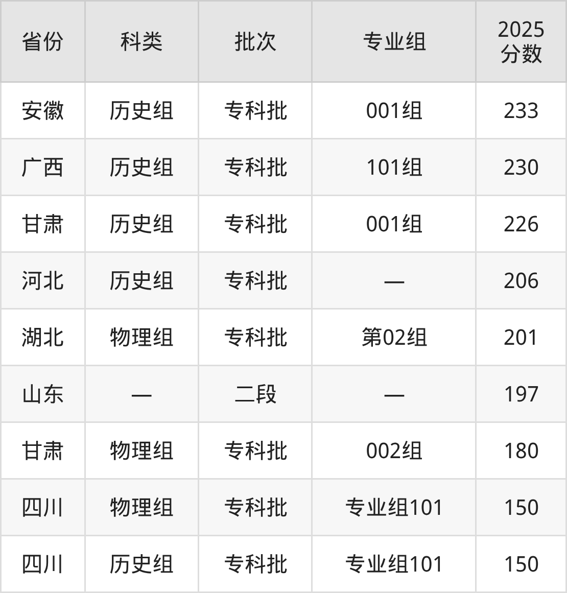 2025年四川托普信息技术职业学院在全国普通批次招生的录取分数范围位于150~357分之间,其中省内分数在150分,物理组最低分专业组为“专业组101”,考生150分即可报考,历史组最低分专业组为“专业组101”,考生150分即可报考。