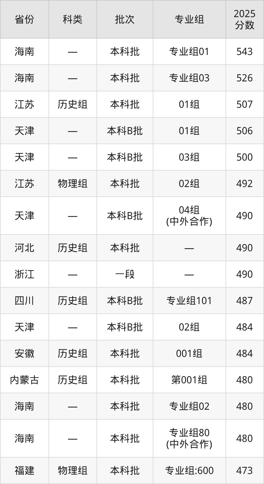 而海南地区考生的分数门槛最高,2025年青岛黄海学院专业组01在海南招生最低分为543分,考生至少要超本科线63分才有可能被录取。