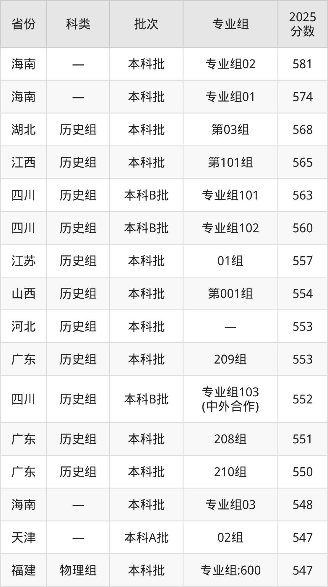 而海南地区考生的分数门槛最高,2025年中南林业科技大学专业组02在海南招生最低分为581分,考生至少要超本科线101分才有可能被录取。