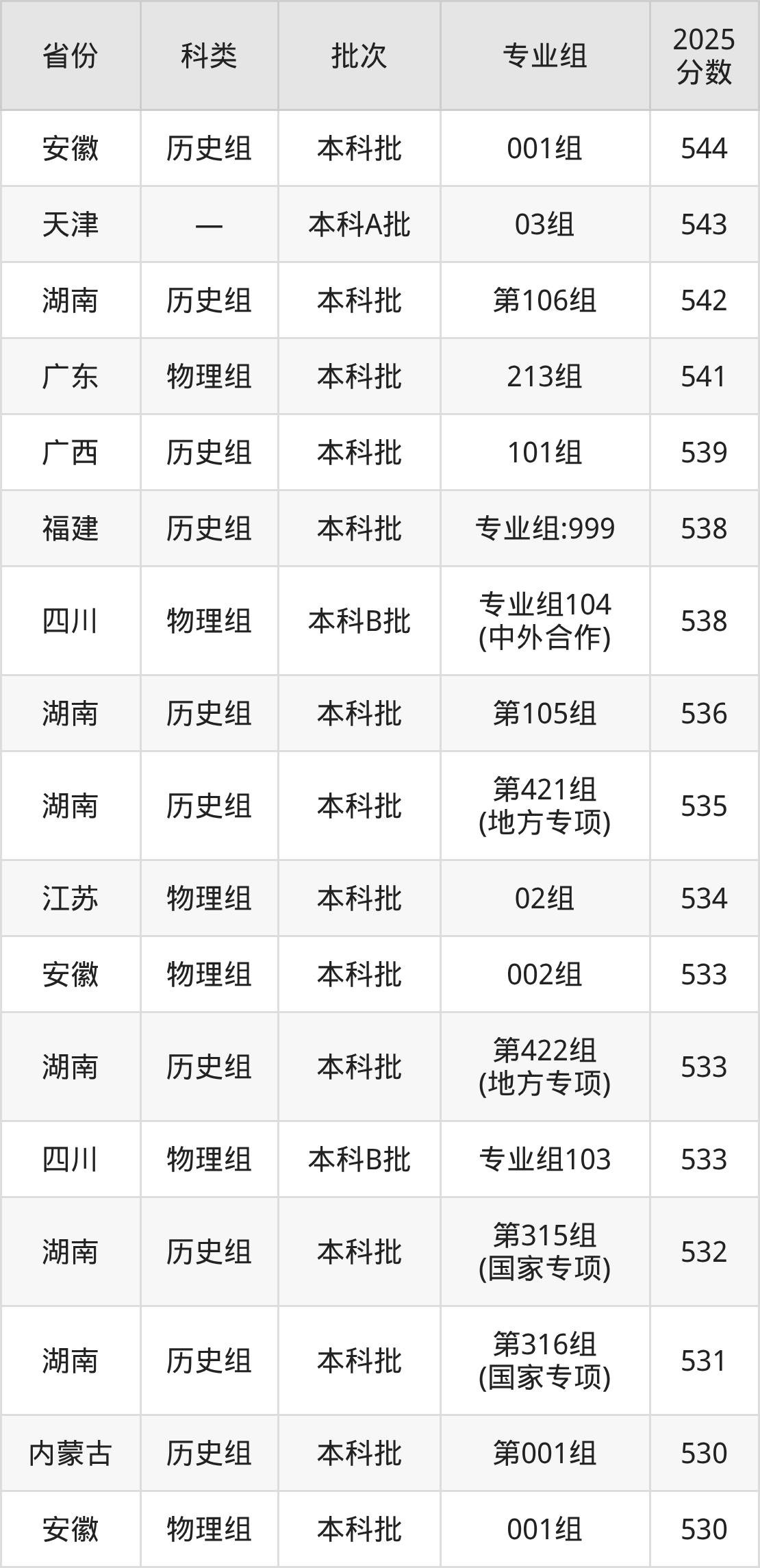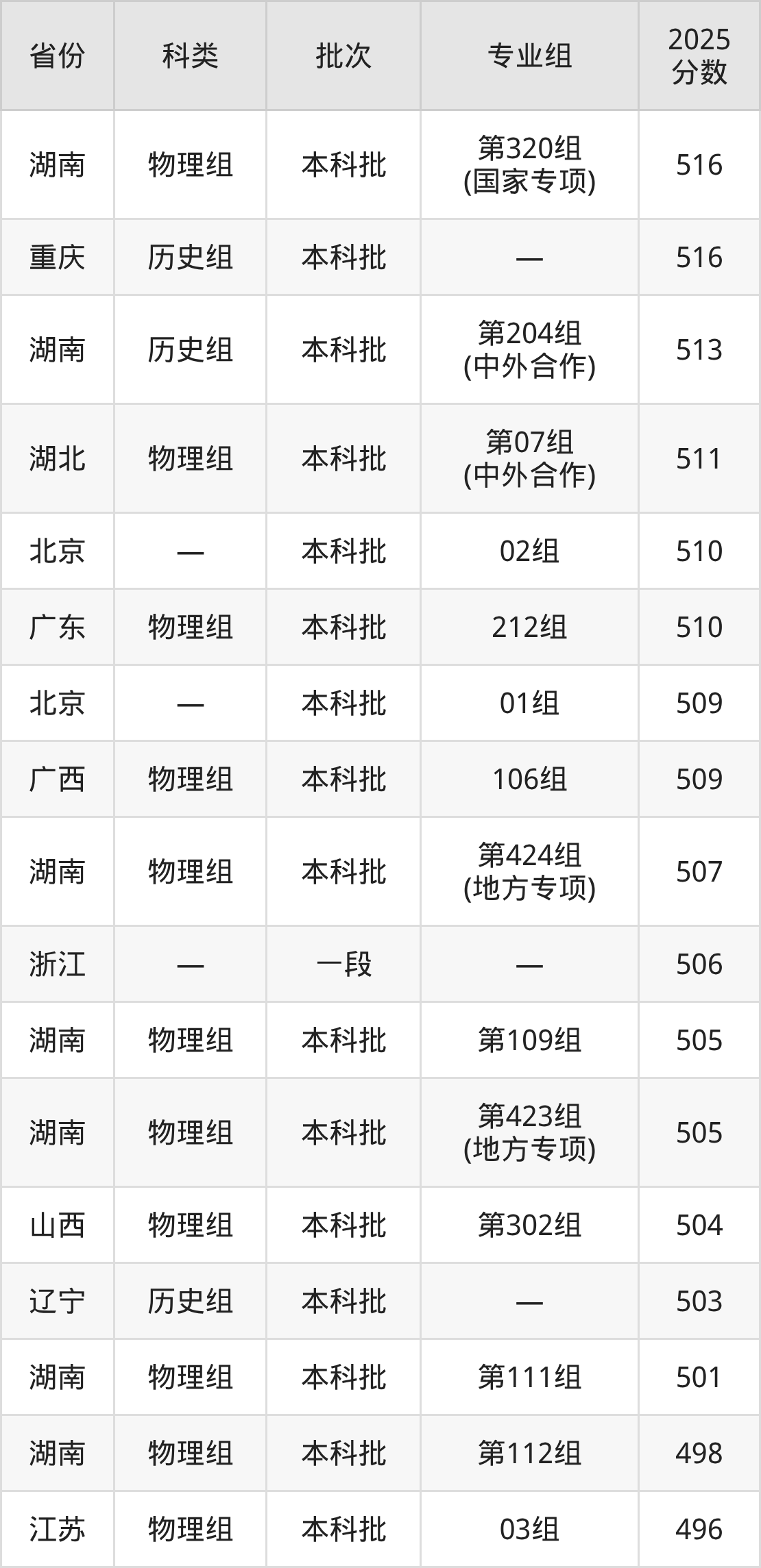 2025年中南林业科技大学在全国普通批次招生的录取分数范围位于373~581分之间,其中省内分数范围为471分~542分,物理组最低分专业组为“第210组(中外合作)”,考生471分即可报考,历史组最低分专业组为“第204组(中外合作)”,考生513分即可报考。