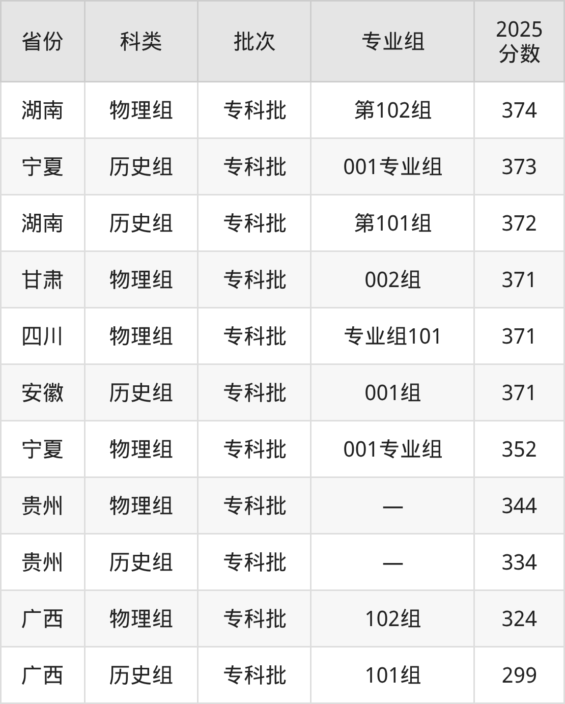 下面是陕西财经职业技术学院2025年在全国各省的录取分数线一览表,供参考: