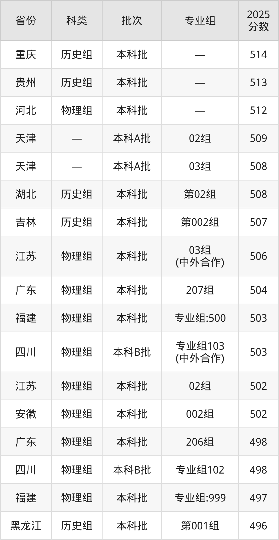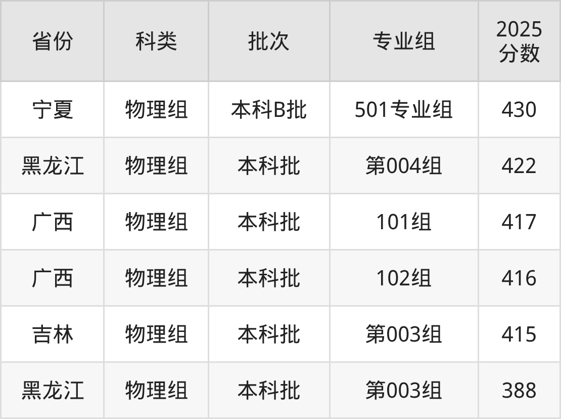 商洛学院在省外招生的最低分为388分,其中黑龙江地区物理组考生上商洛学院的分数门槛最低,考生成绩超本科线28分(388分)可上。其次是吉林物理组考生,上商洛学院至少要超本科线75分(415分)。