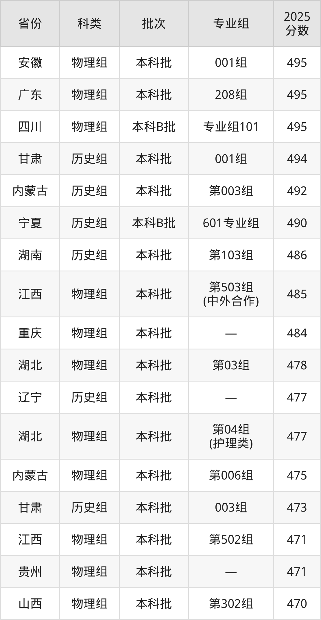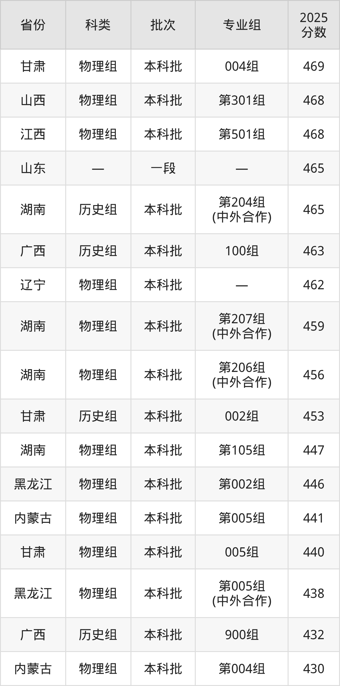 下面是商洛学院2025年在全国各省的录取分数线一览表,供参考: