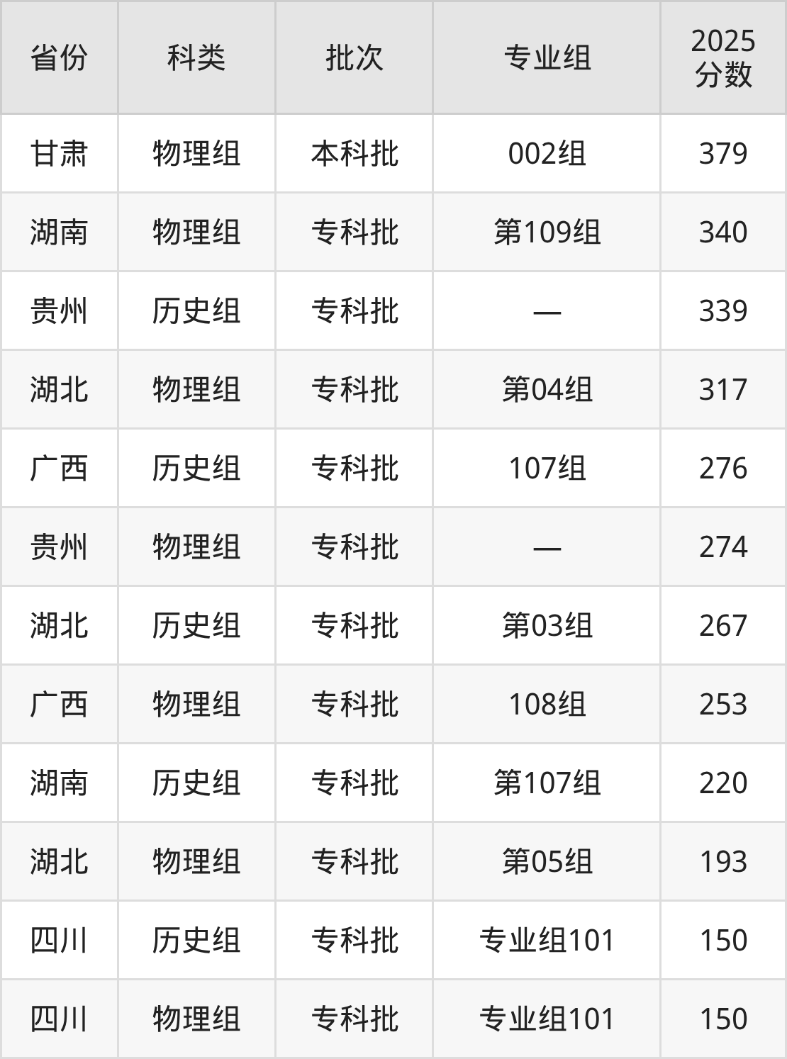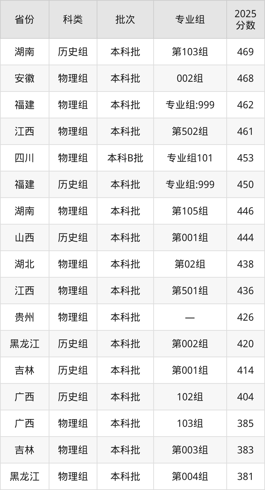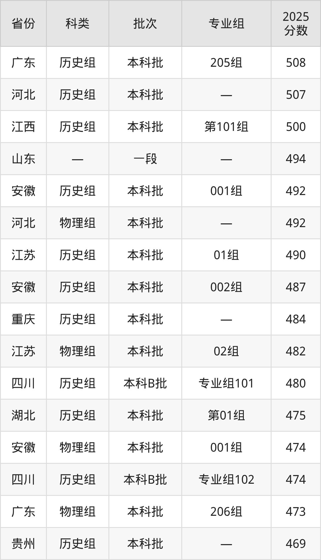而广东地区历史组考生的分数门槛最高,2025年武汉体育学院体育科技学院205组在广东招生最低分为508分,考生至少要超本科线44分才有可能被录取。