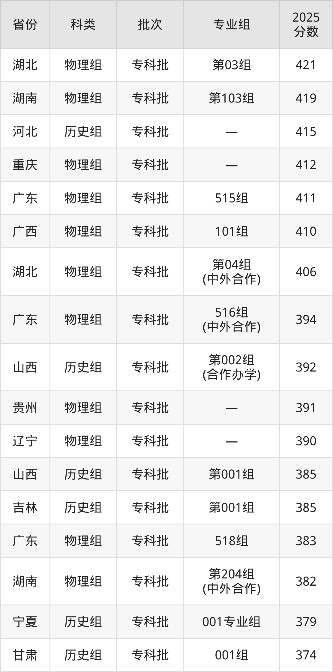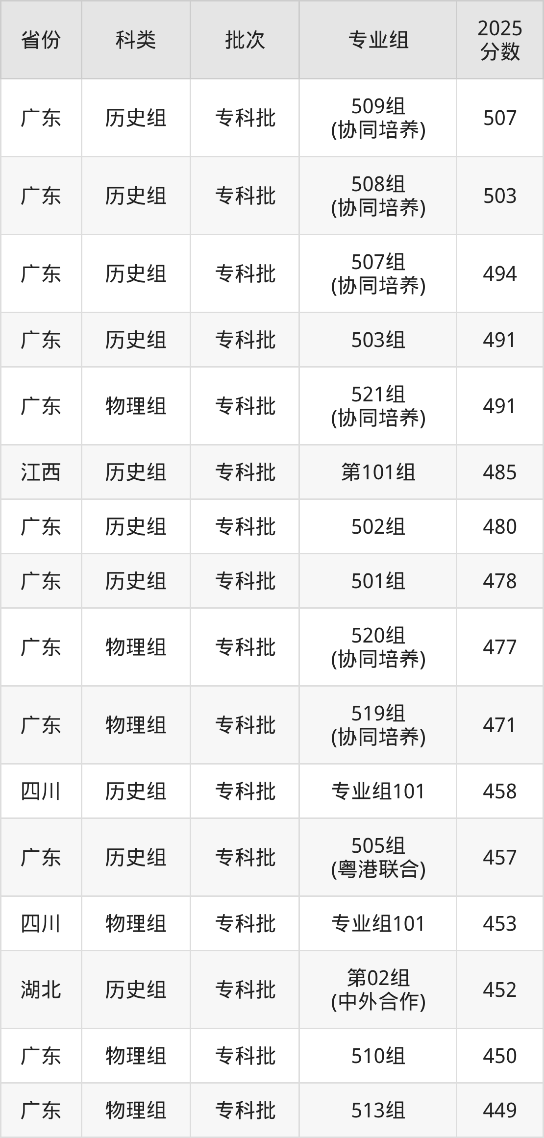 下面是广东科学技术职业学院2025年在全国各省的录取分数线一览表,供参考: