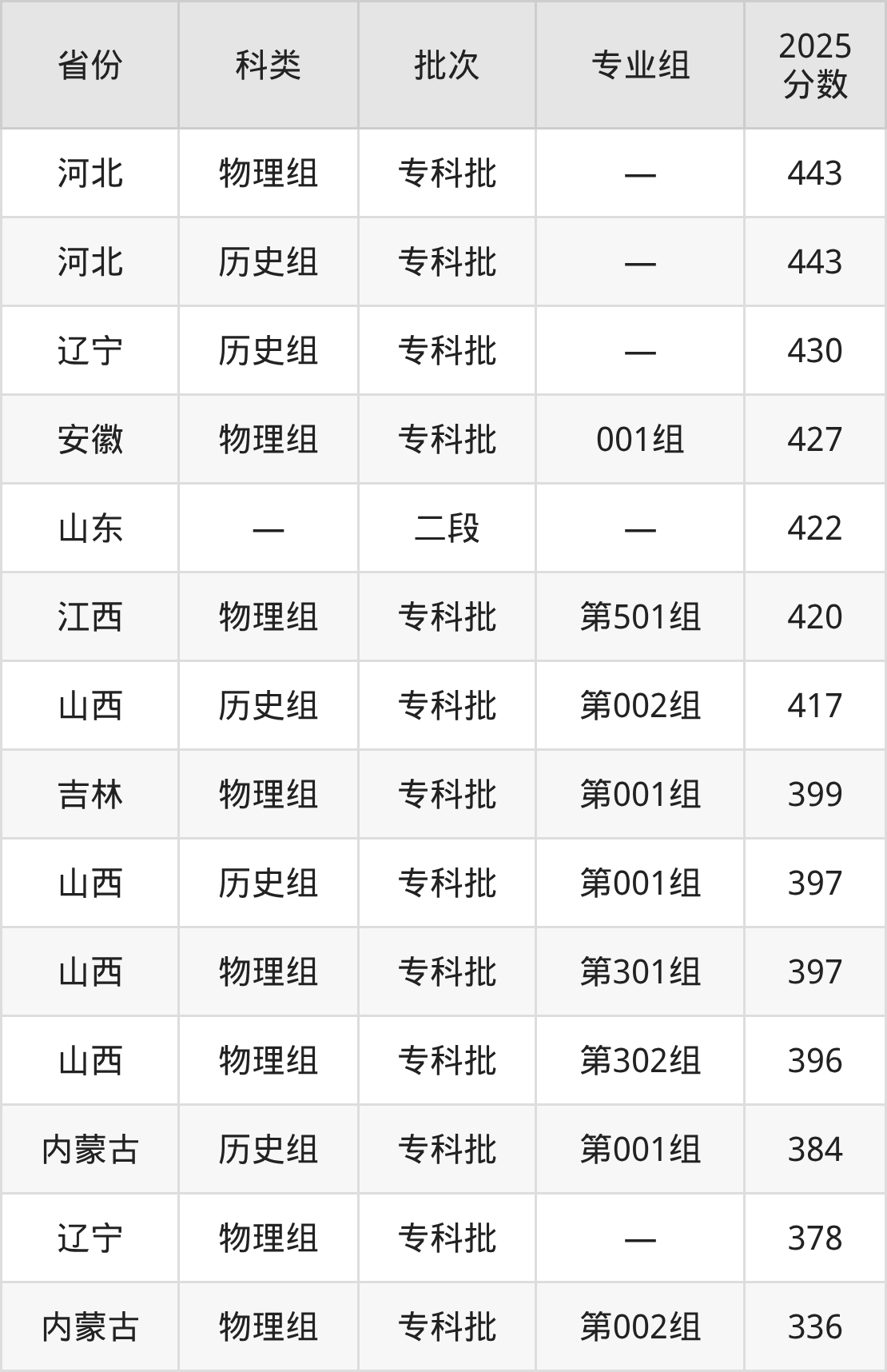 2025年北京交通职业技术学院在全国普通批次招生的录取分数范围位于336~443分之间。