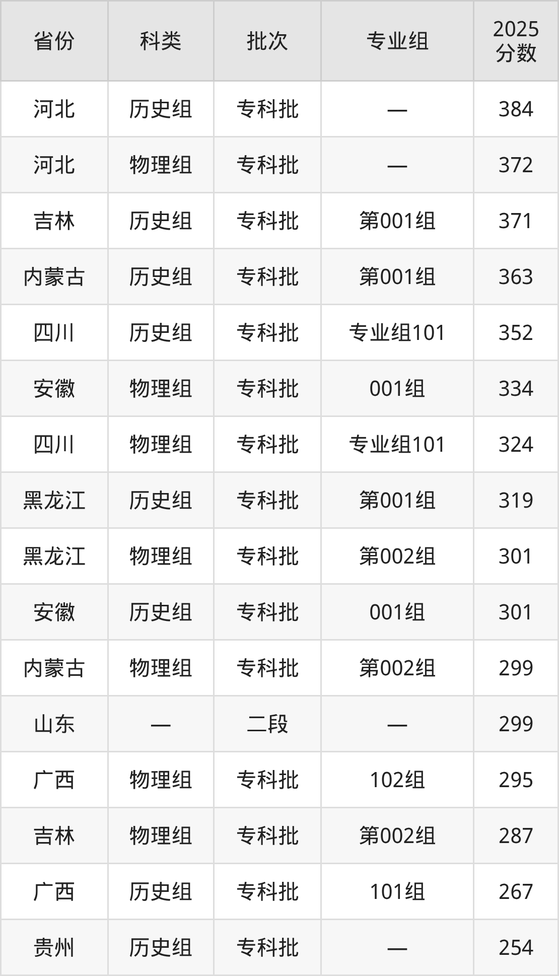 而河北地区历史组考生的分数门槛最高,2025年黑龙江民族职业学院在河北招生最低分为384分,考生至少要超专科线184分才有可能被录取。