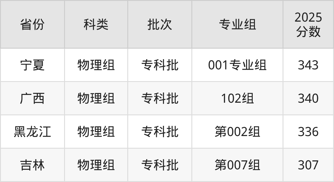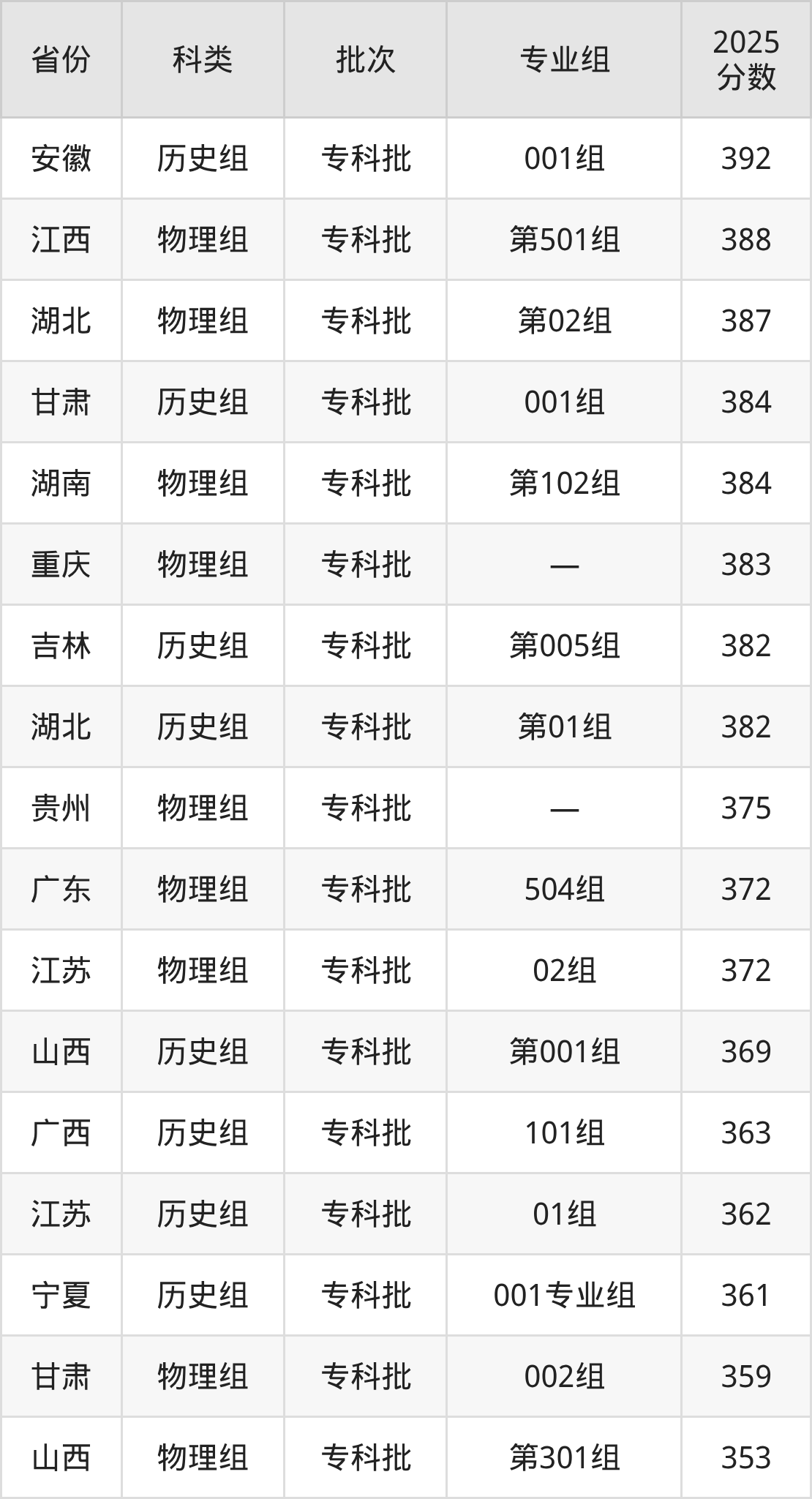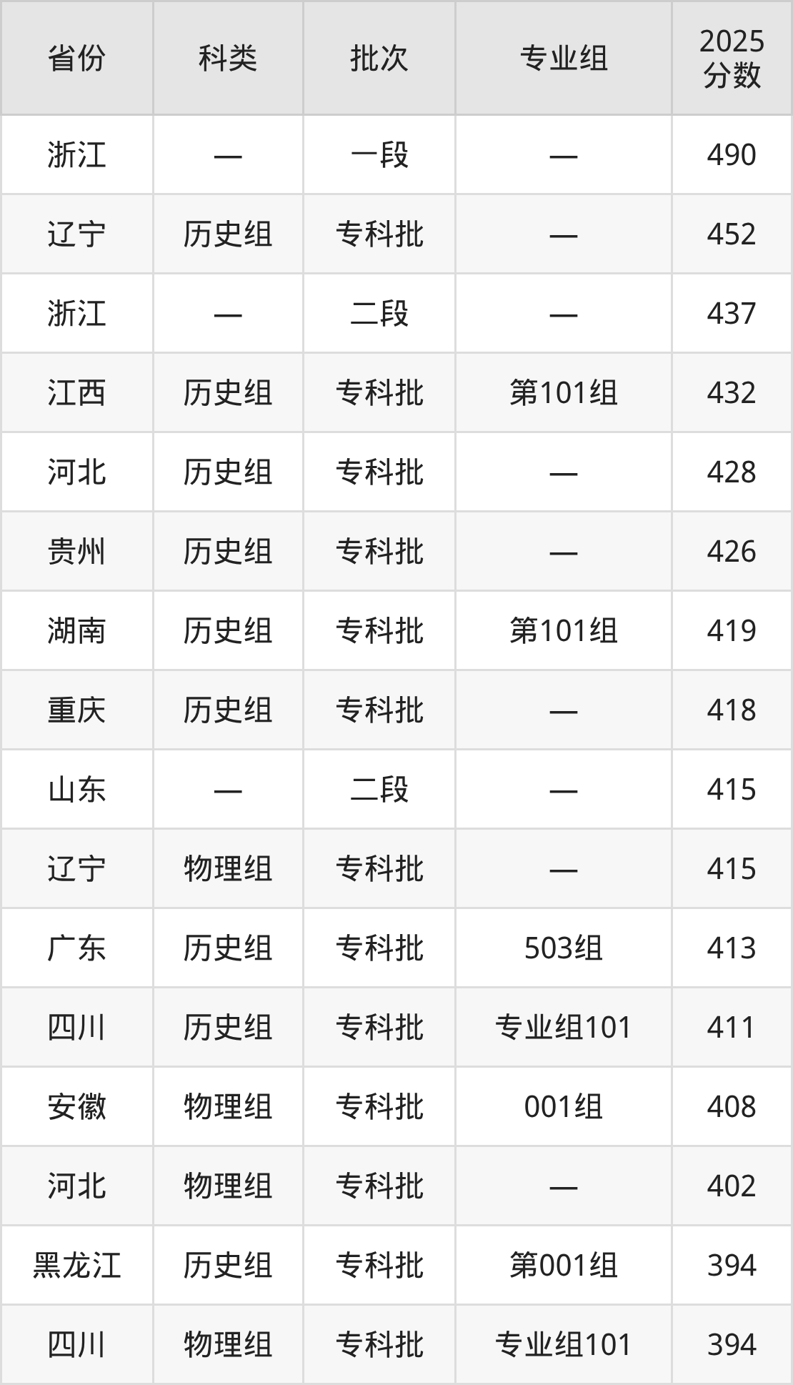 下面是吉林司法警官职业学院2025年在全国各省的录取分数线一览表,供参考: