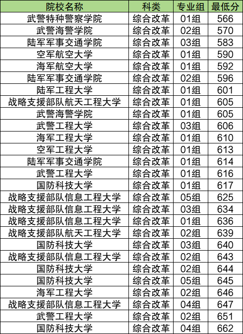 因为在提前批招生院校较多,受到篇幅限制,本文就以军校、警校和定向士官为例,整理出这三类院校在天津提前批的录取分数线。