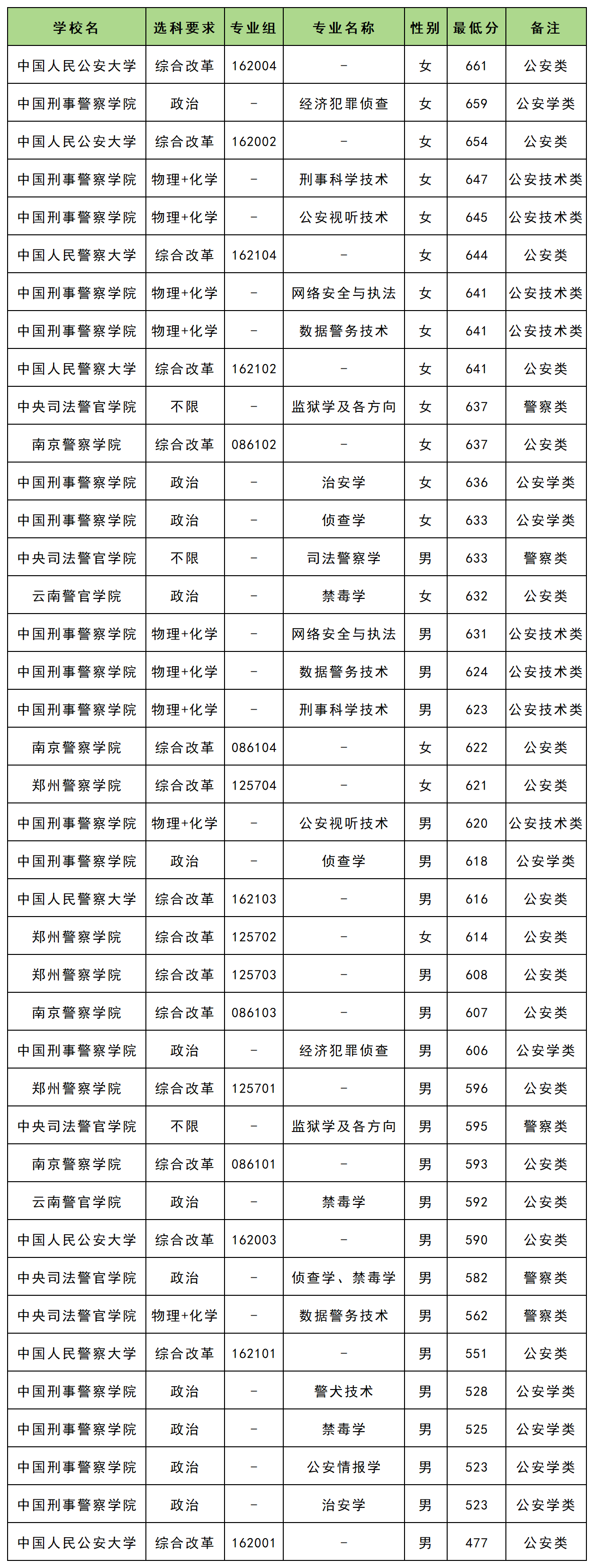 代表院校:中国人民公安大学、中央司法警官学院、中国刑事警察学院等。