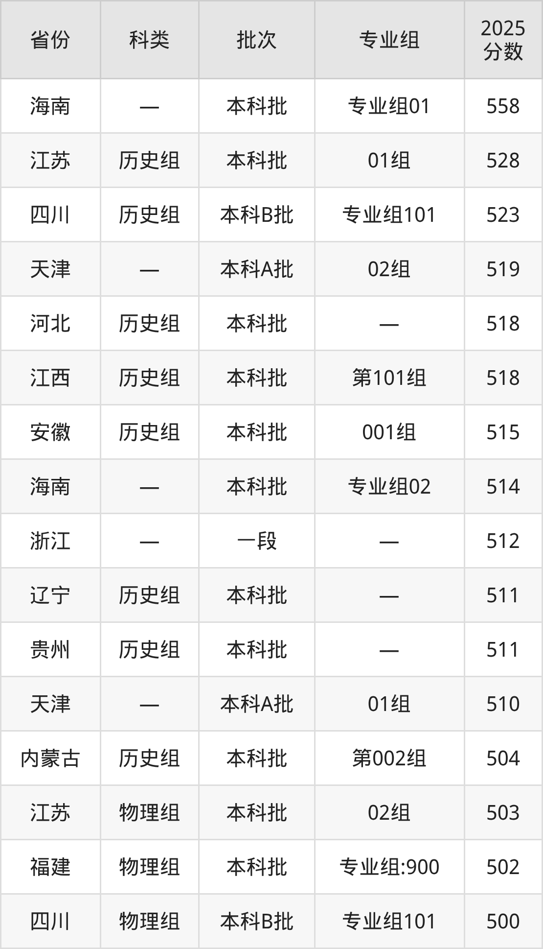 而海南地区考生的分数门槛最高,2025年邯郸学院专业组01在海南招生最低分为558分,考生至少要超本科线78分才有可能被录取。