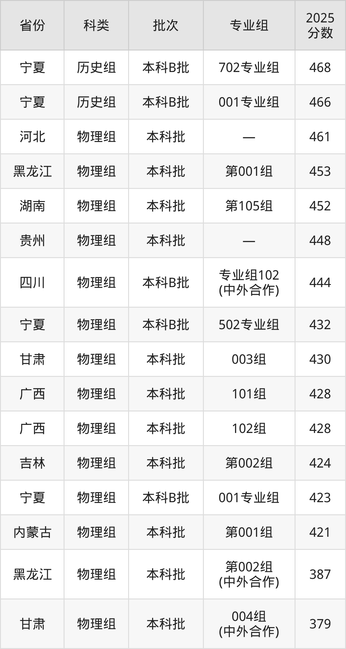 下面是邯郸学院2025年在全国各省的录取分数线一览表,供参考:
