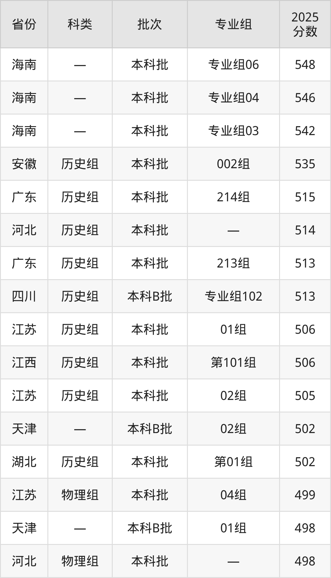 而海南地区考生的分数门槛最高,2025年四川大学锦江学院专业组06在海南招生最低分为548分,考生至少要超本科线68分才有可能被录取。
