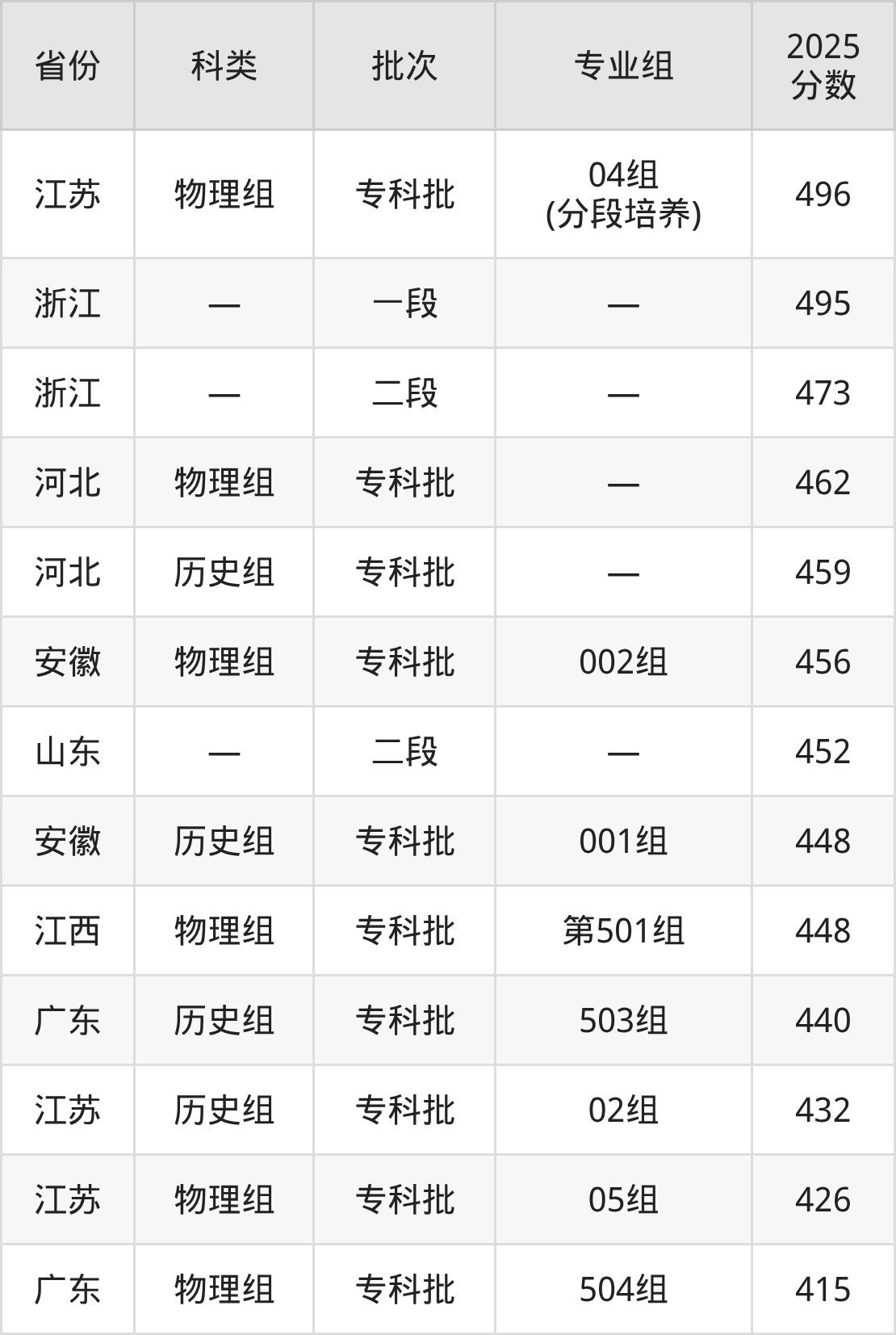 2025年江苏信息职业技术学院在全国普通批次招生的录取分数范围位于415~496分之间,其中省内分数范围为426分~496分,物理组最低分专业组为“05组”,考生426分即可报考,历史组最低分专业组为“02组”,考生432分即可报考。