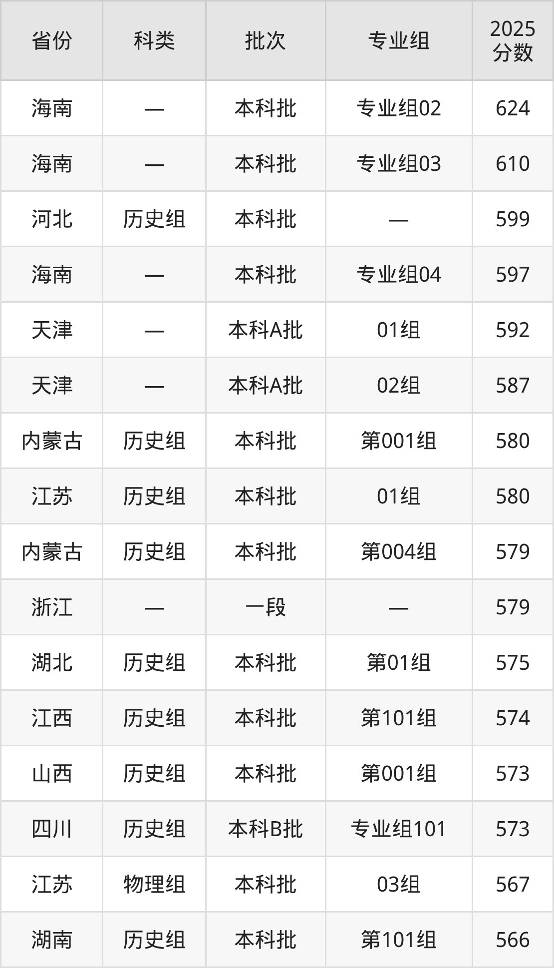 下面是上海立信会计金融学院2025年在全国各省的录取分数线一览表,供参考: