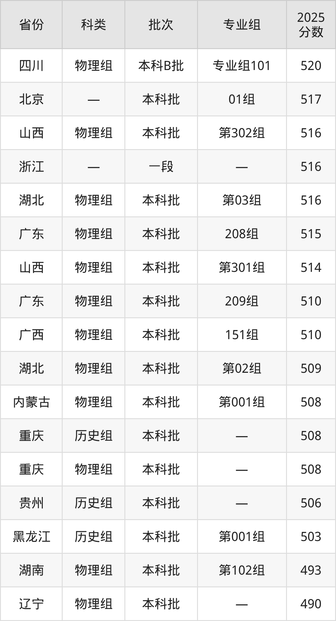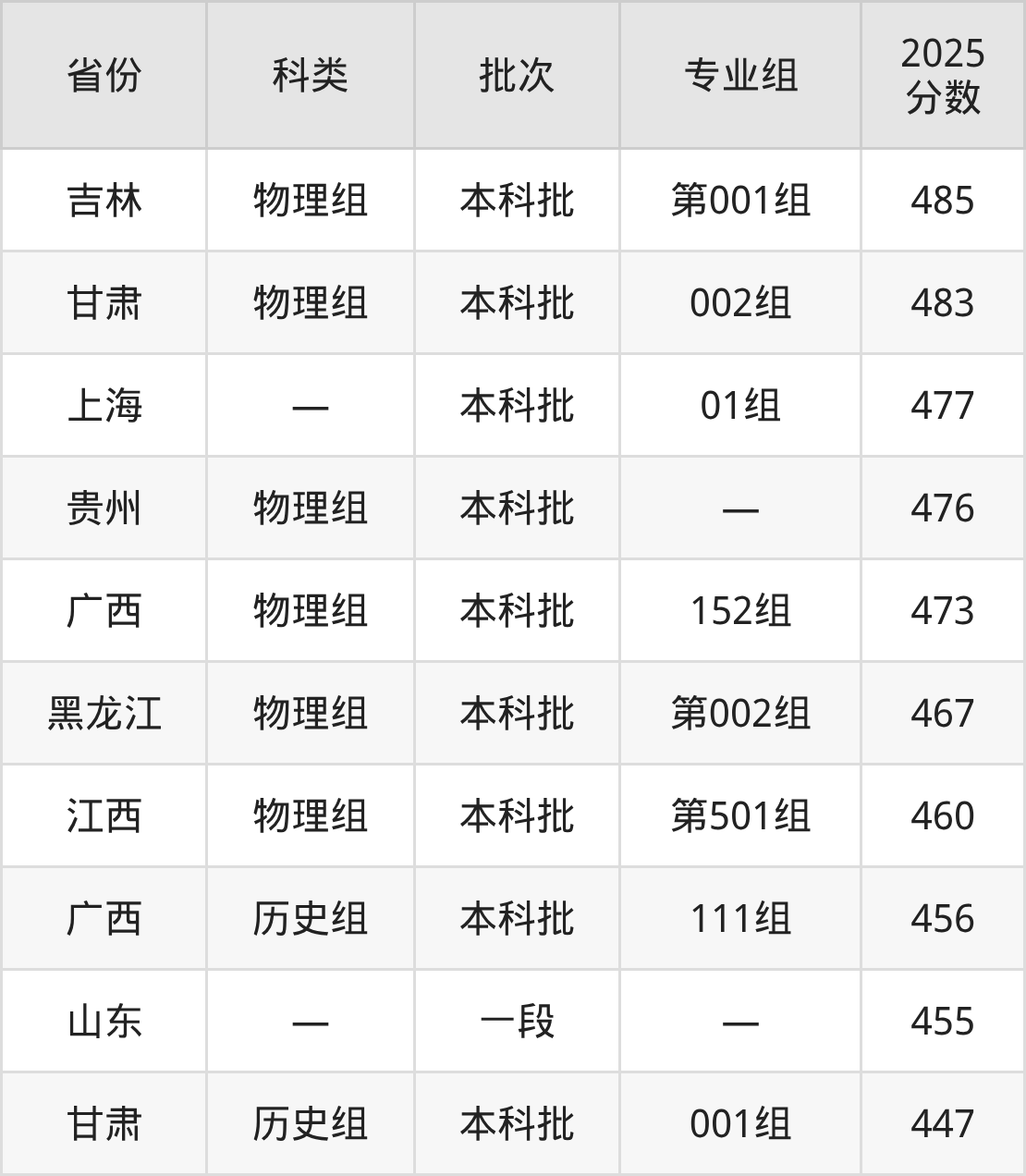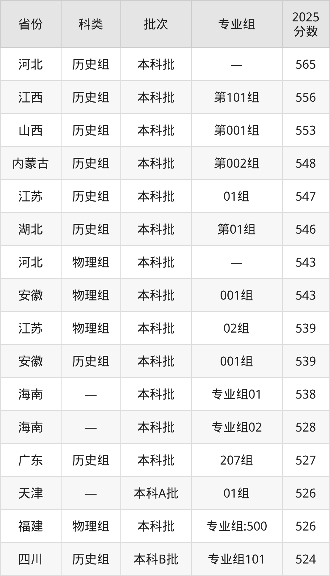而河北地区历史组考生的分数门槛最高,2025年齐鲁工业大学在河北招生最低分为565分,考生至少要超本科线88分才有可能被录取。
