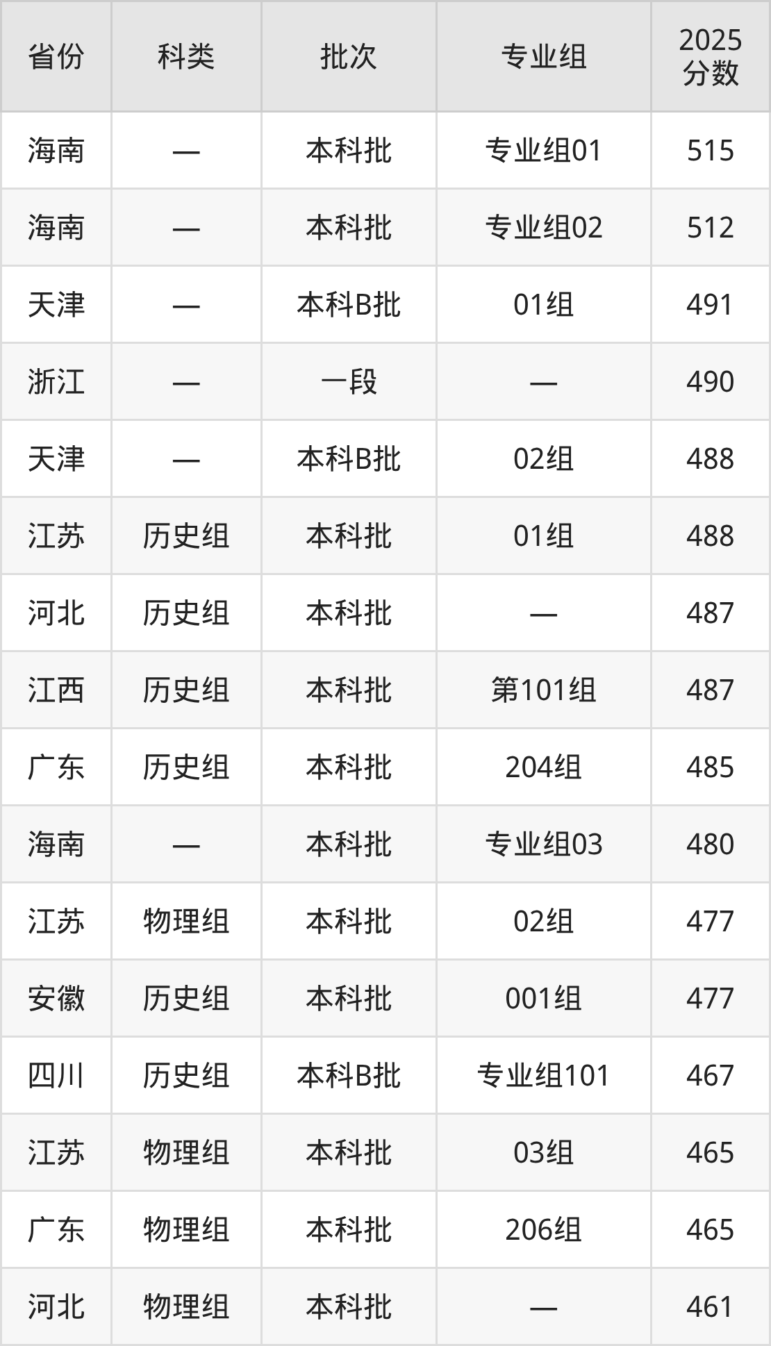 而海南地区考生的分数门槛最高,2025年西安欧亚学院专业组01在海南招生最低分为515分,考生至少要超本科线35分才有可能被录取。
