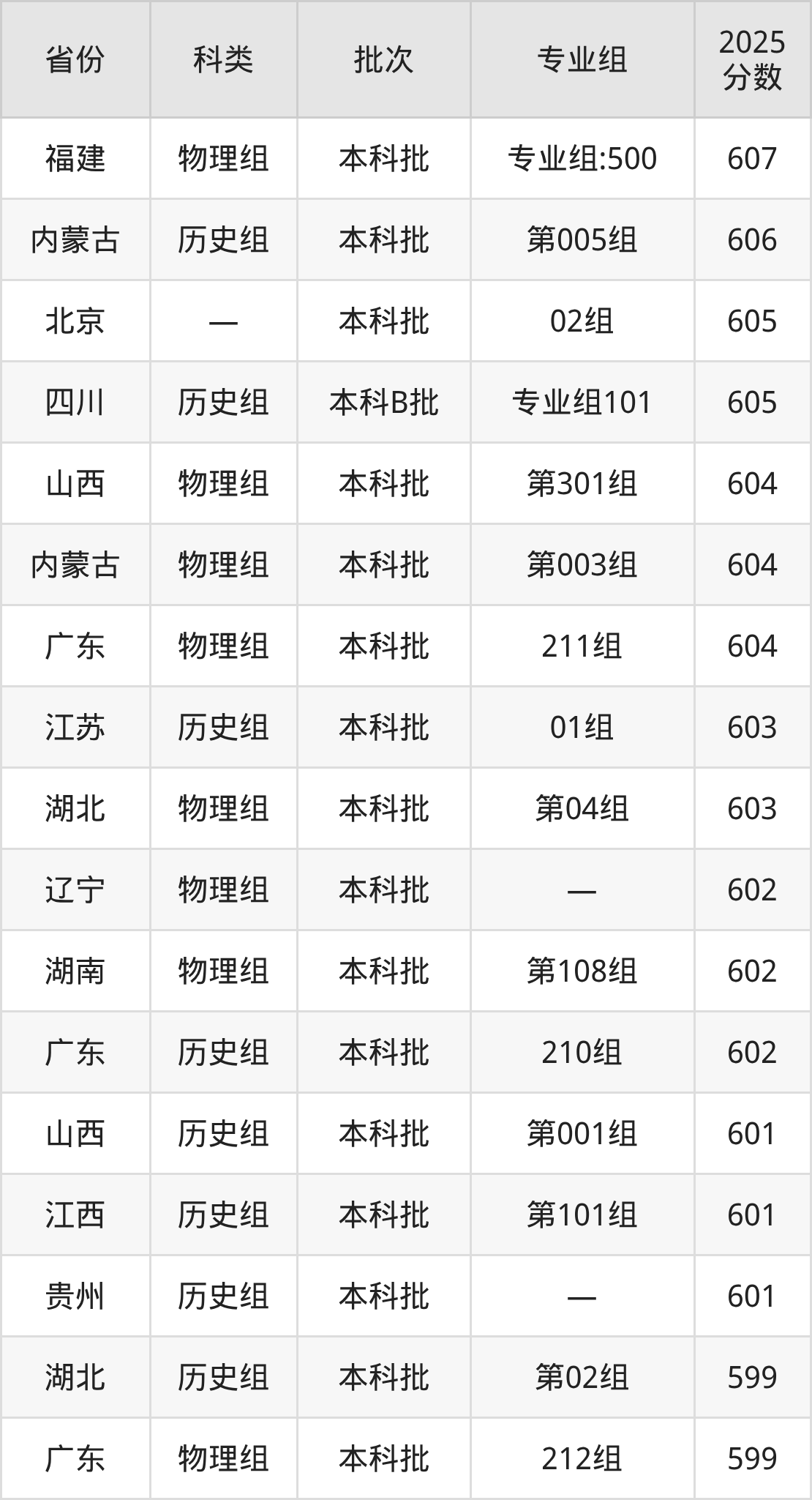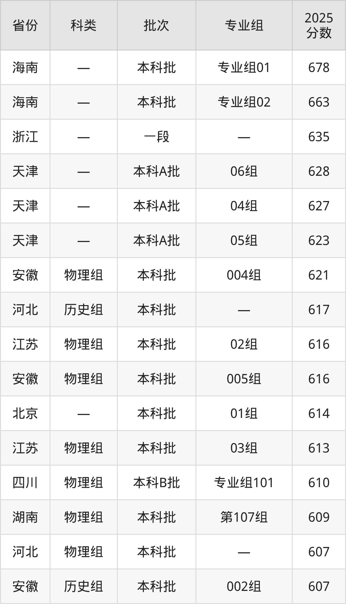 东华大学2026年录取分数需在高招结束官方数据公布后更新,2026届有意向报考该校的同学,可以在填报志愿时参考东华大学2025年录取分数线: