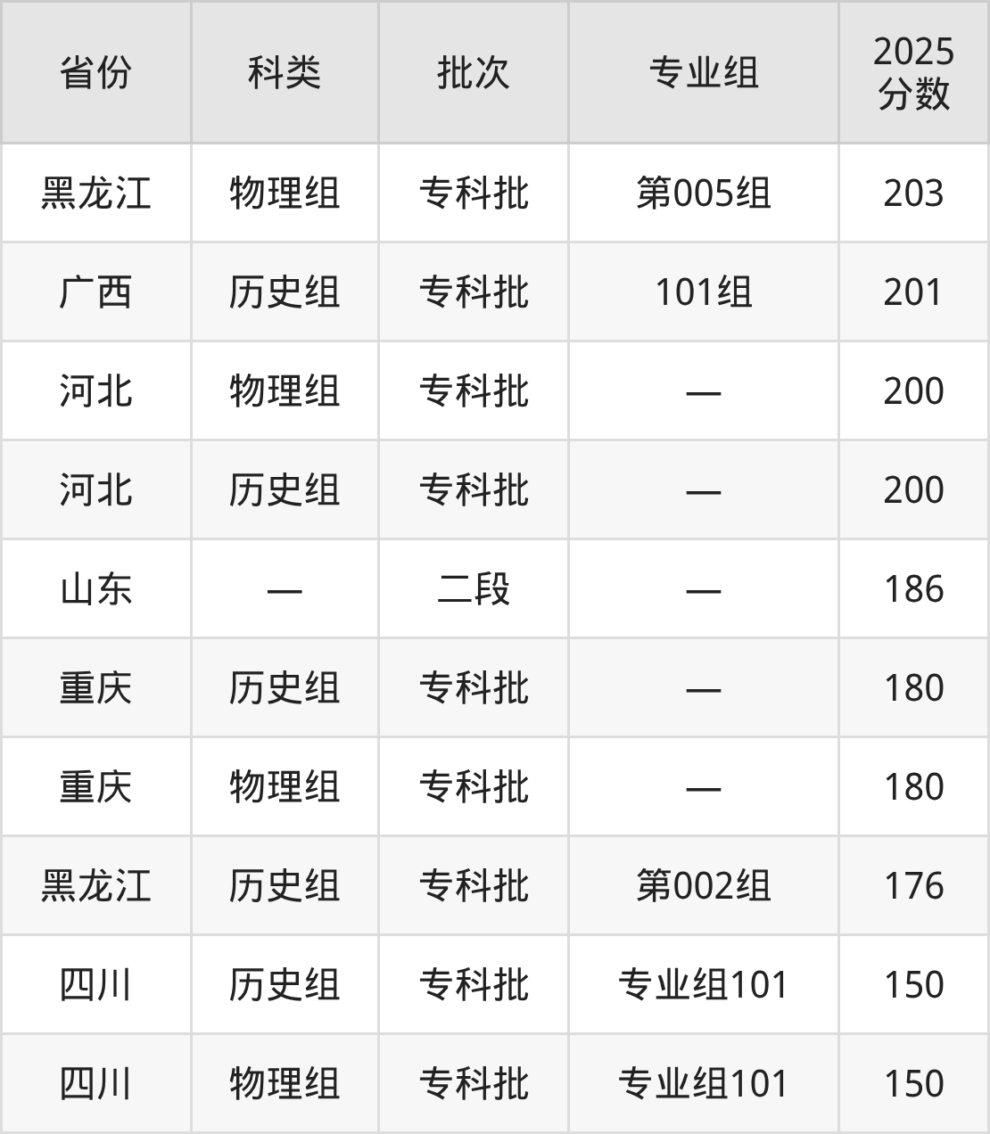 三亚航空旅游职业学院在省外招生的最低分为150分,其中四川地区历史组考生上三亚航空旅游职业学院的分数门槛最低,考生成绩达专科线即可报考。其次是黑龙江历史组考生,上三亚航空旅游职业学院至少要超专科线16分(176分)。