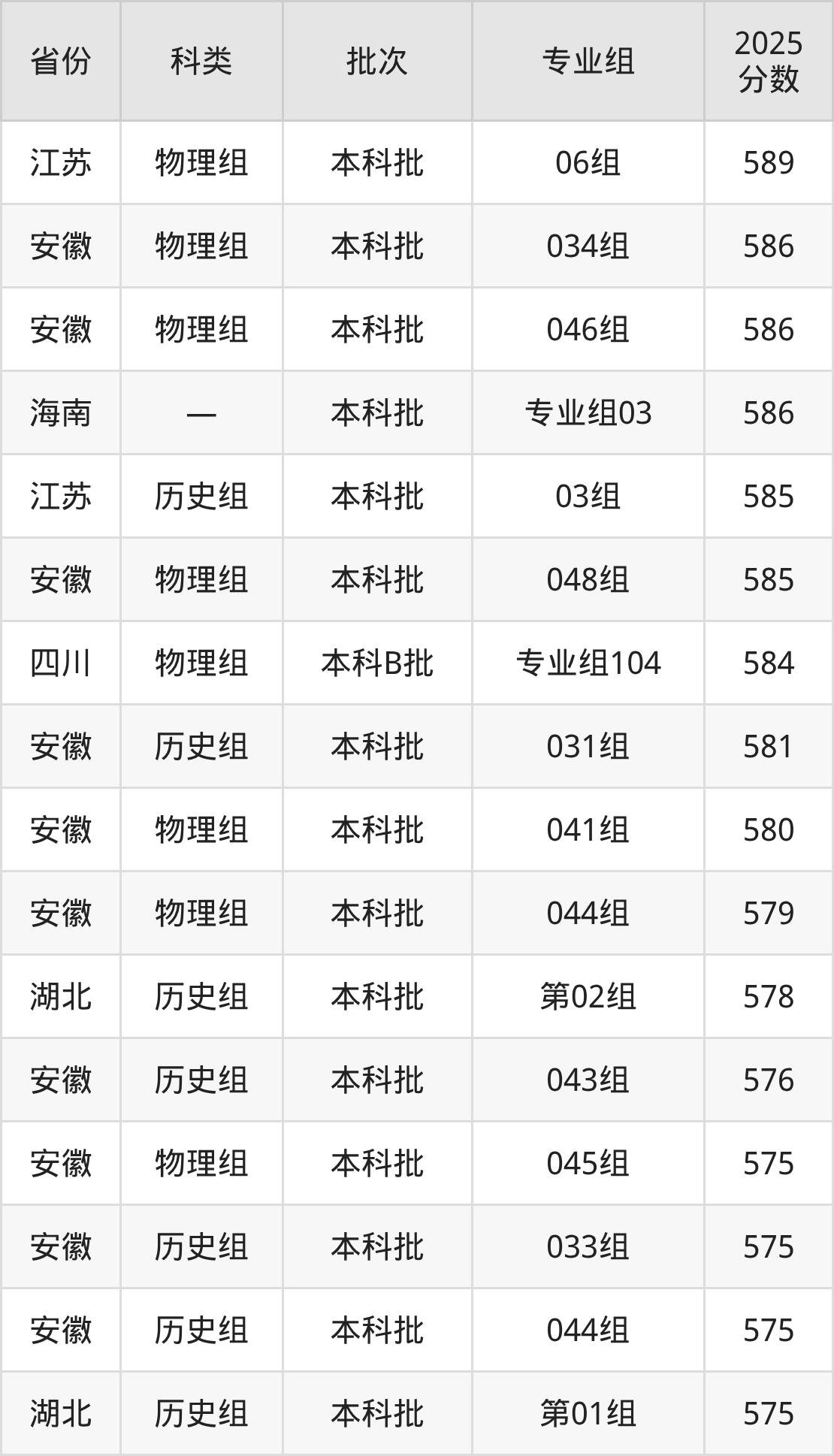 而江苏地区物理组考生的分数门槛最高,2025年安徽师范大学06组在江苏招生最低分为589分,考生至少要超本科线126分才有可能被录取。