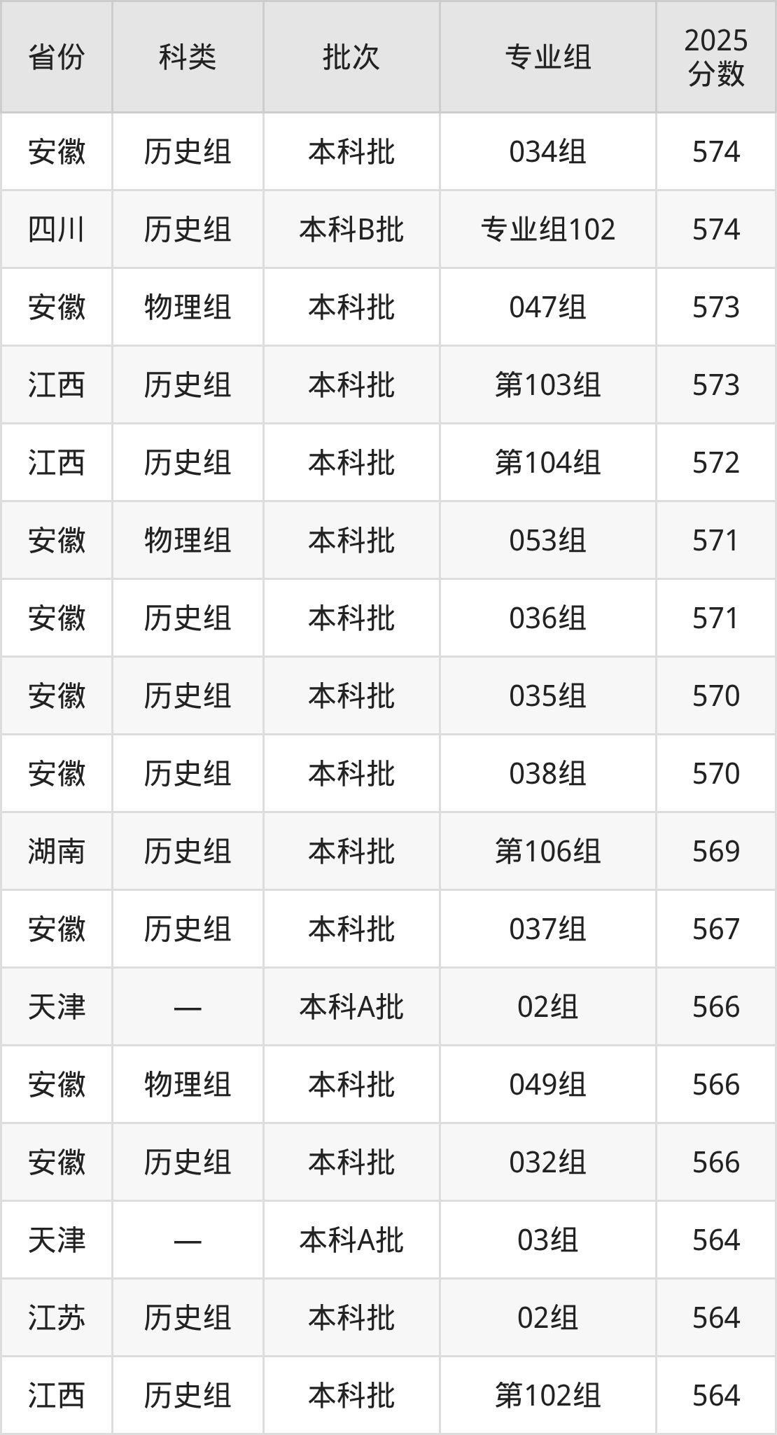 下面是安徽师范大学2025年在全国各省的录取分数线一览表,供参考: