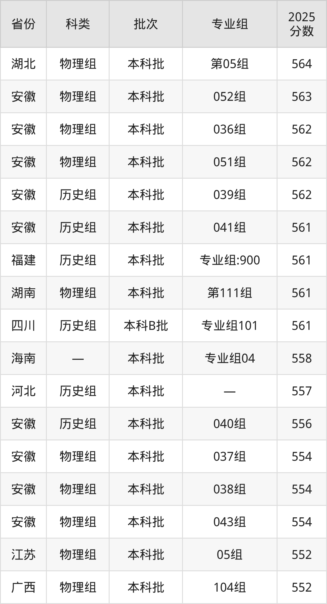 安徽师范大学2026年录取分数需在高招结束官方数据公布后更新,2026届有意向报考该校的同学,可以在填报志愿时参考安徽师范大学2025年录取分数线: