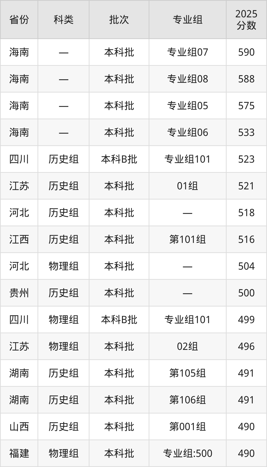 而海南地区考生的分数门槛最高,2025年广西民族师范学院专业组07在海南招生最低分为590分,考生至少要超本科线110分才有可能被录取。