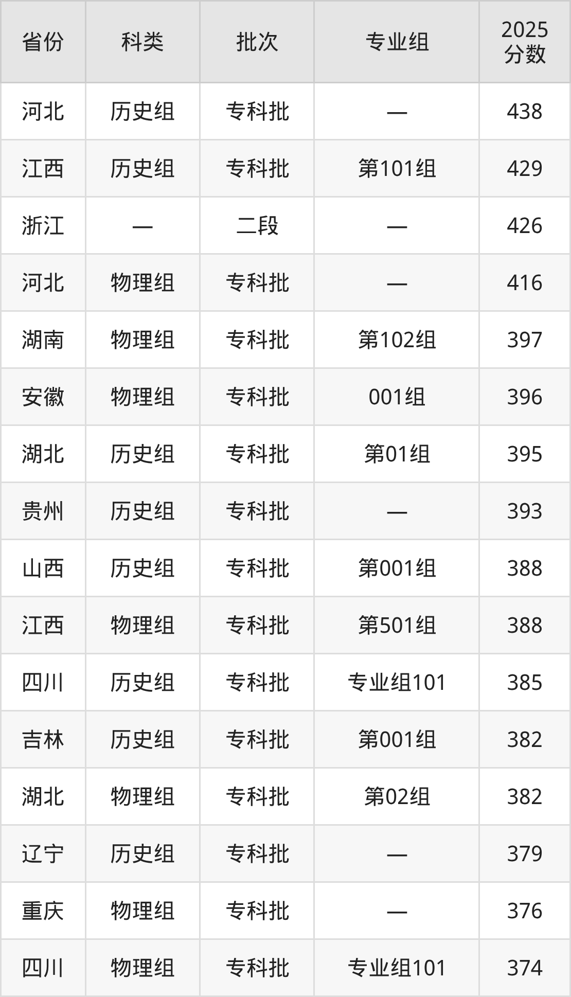 而河北地区历史组考生的分数门槛最高,2025年山东水利职业学院在河北招生最低分为438分,考生至少要超专科线238分才有可能被录取。