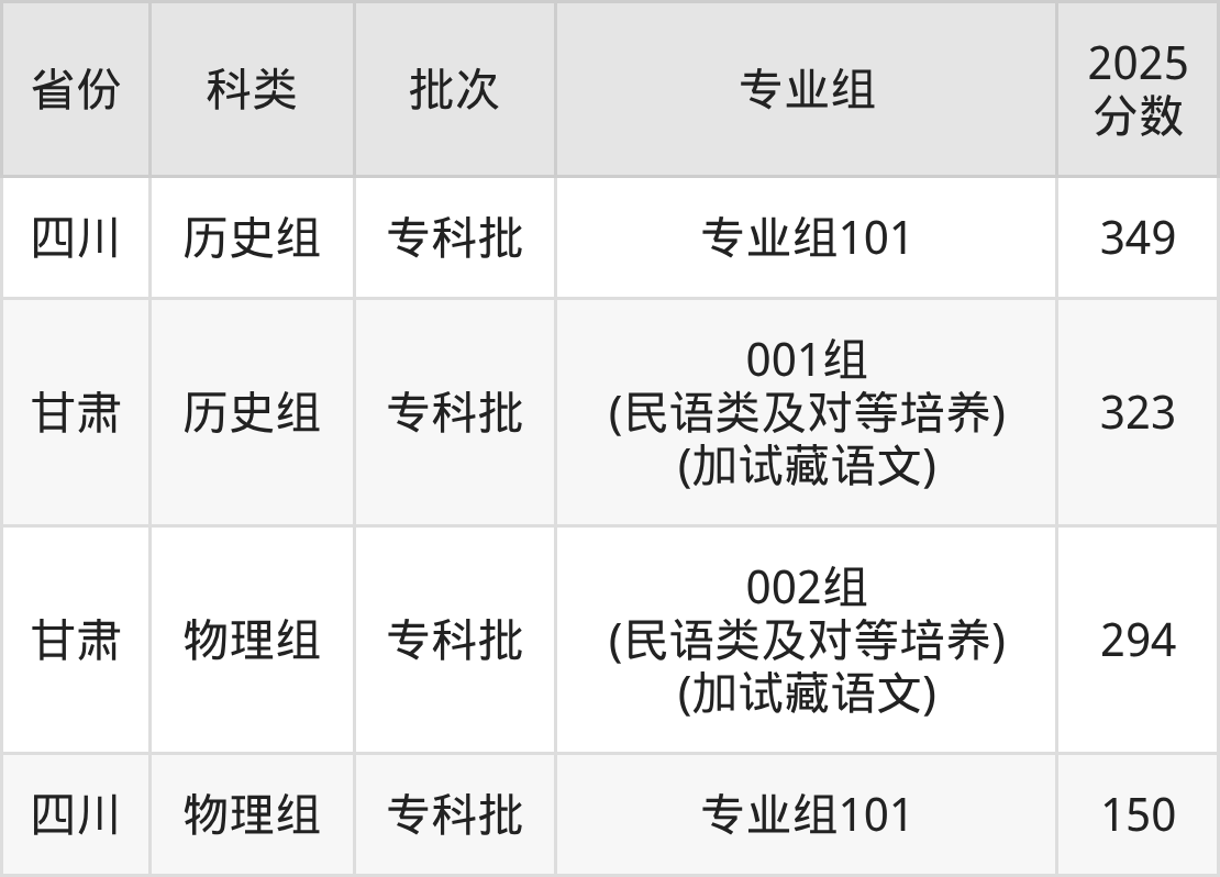 下面是甘孜职业学院2025年在全国各省的录取分数线一览表,供参考: