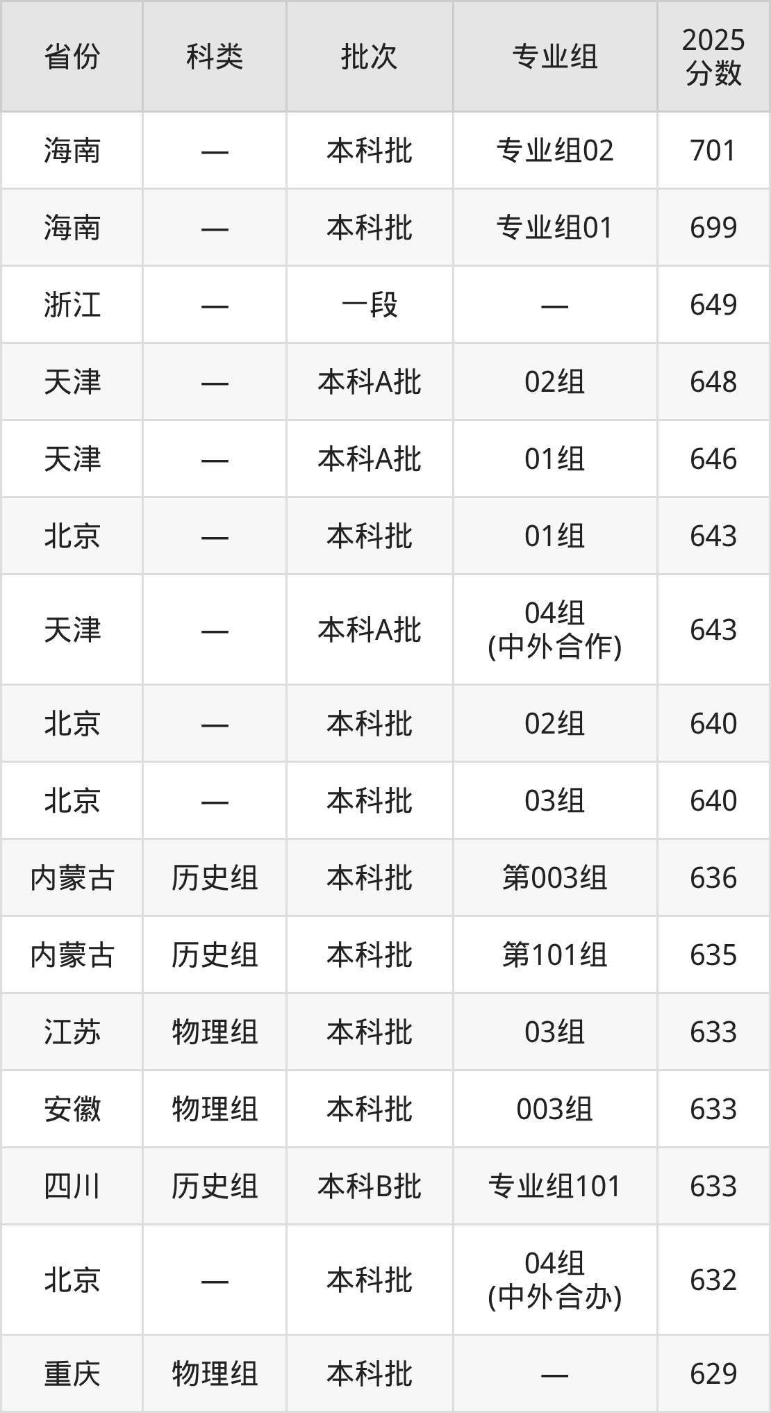 而海南地区考生的分数门槛最高,2025年中央财经大学专业组02在海南招生最低分为701分,考生至少要超本科线221分才有可能被录取。