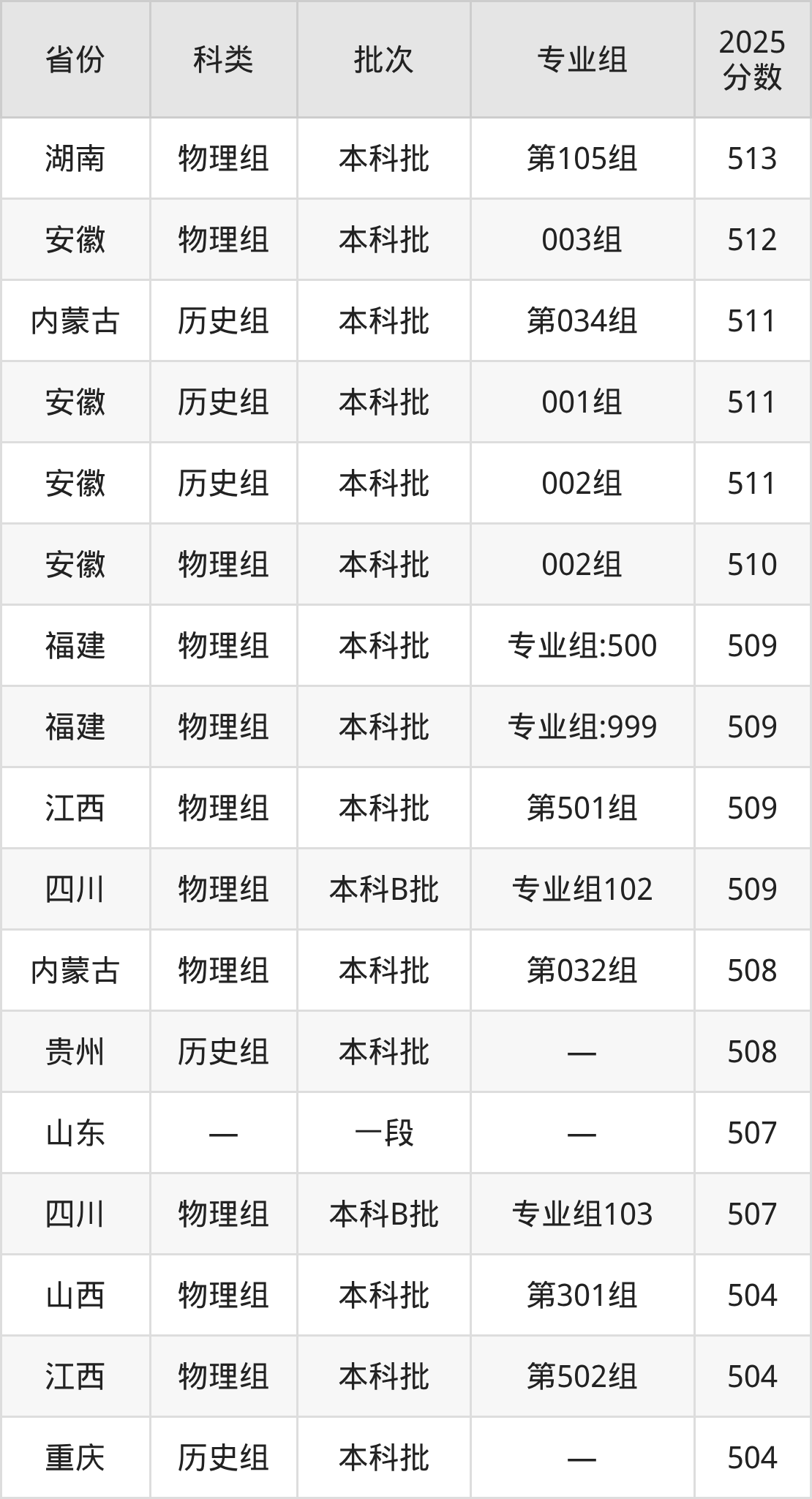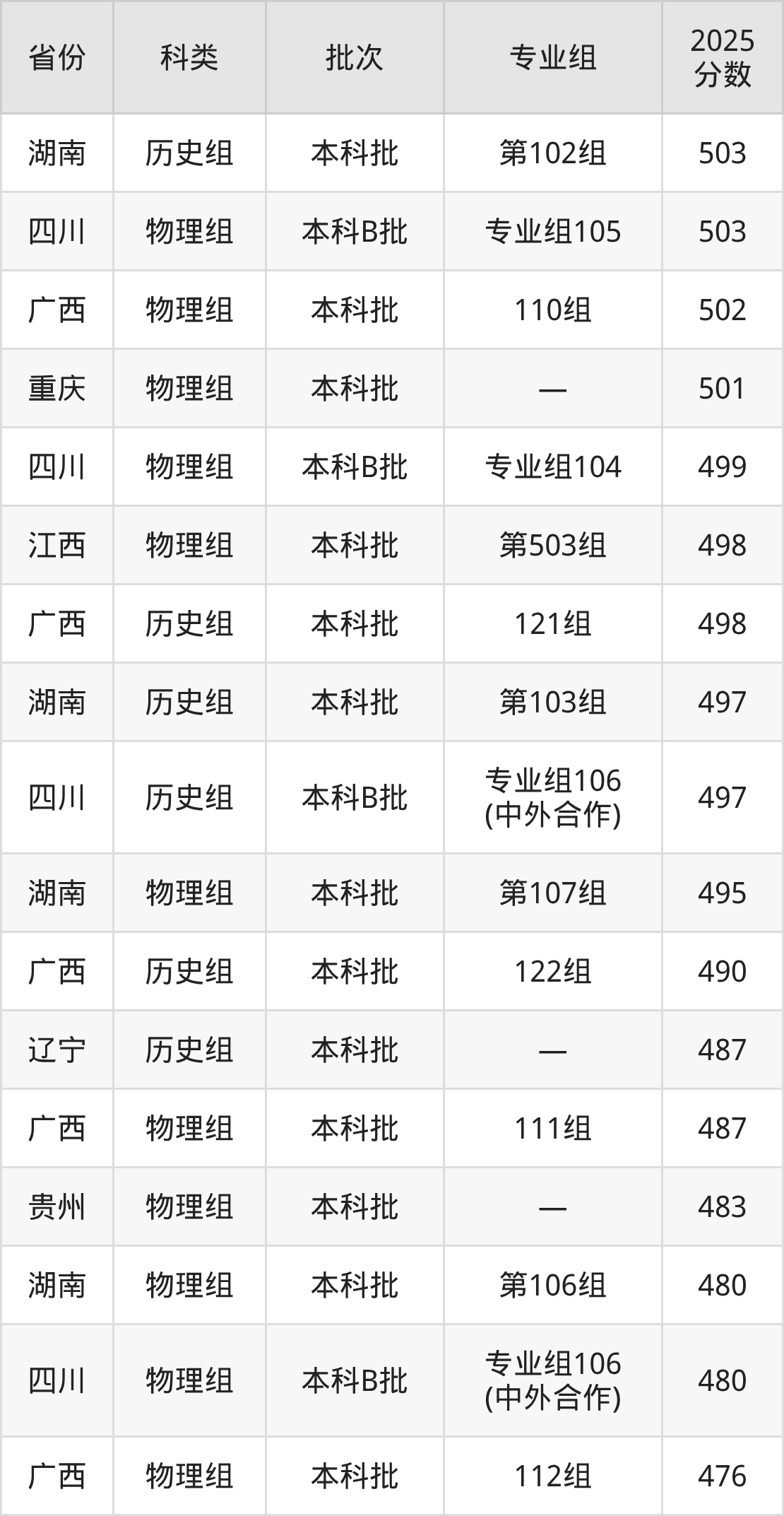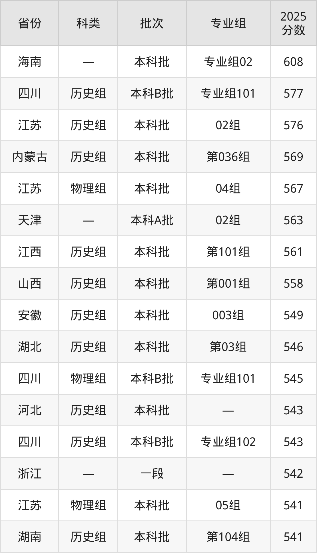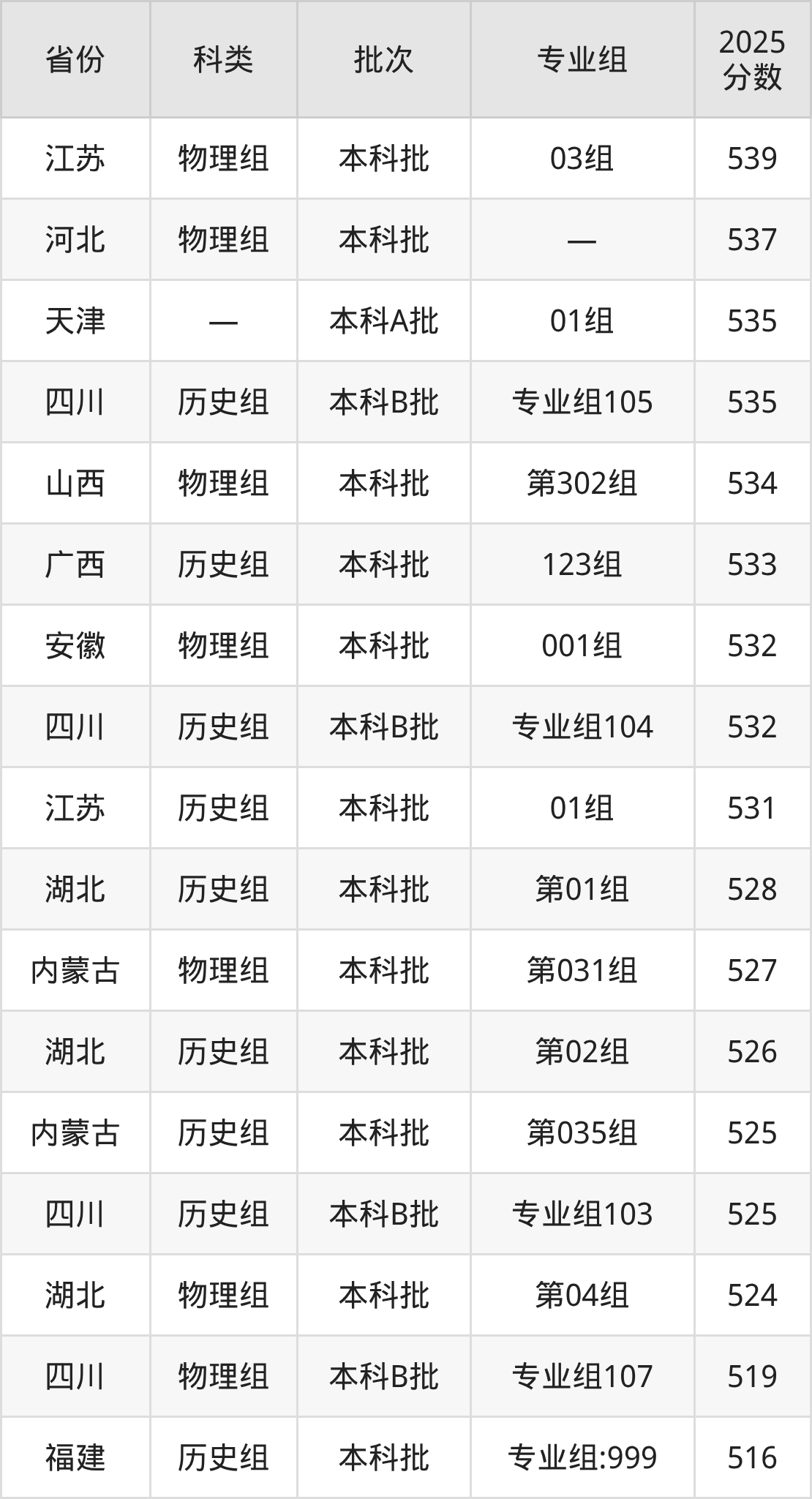 下面是成都体育学院2025年在全国各省的录取分数线一览表,供参考: