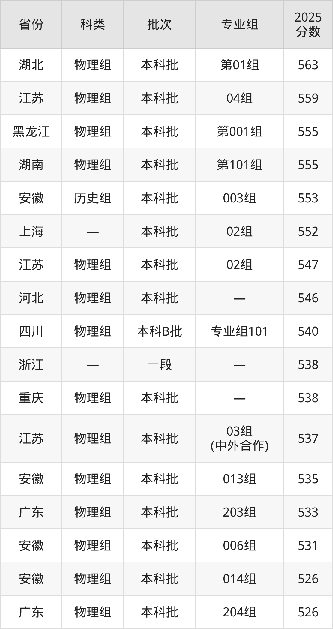 下面是安徽医科大学2025年在全国各省的录取分数线一览表,供参考: