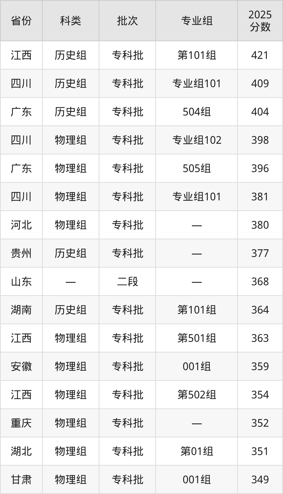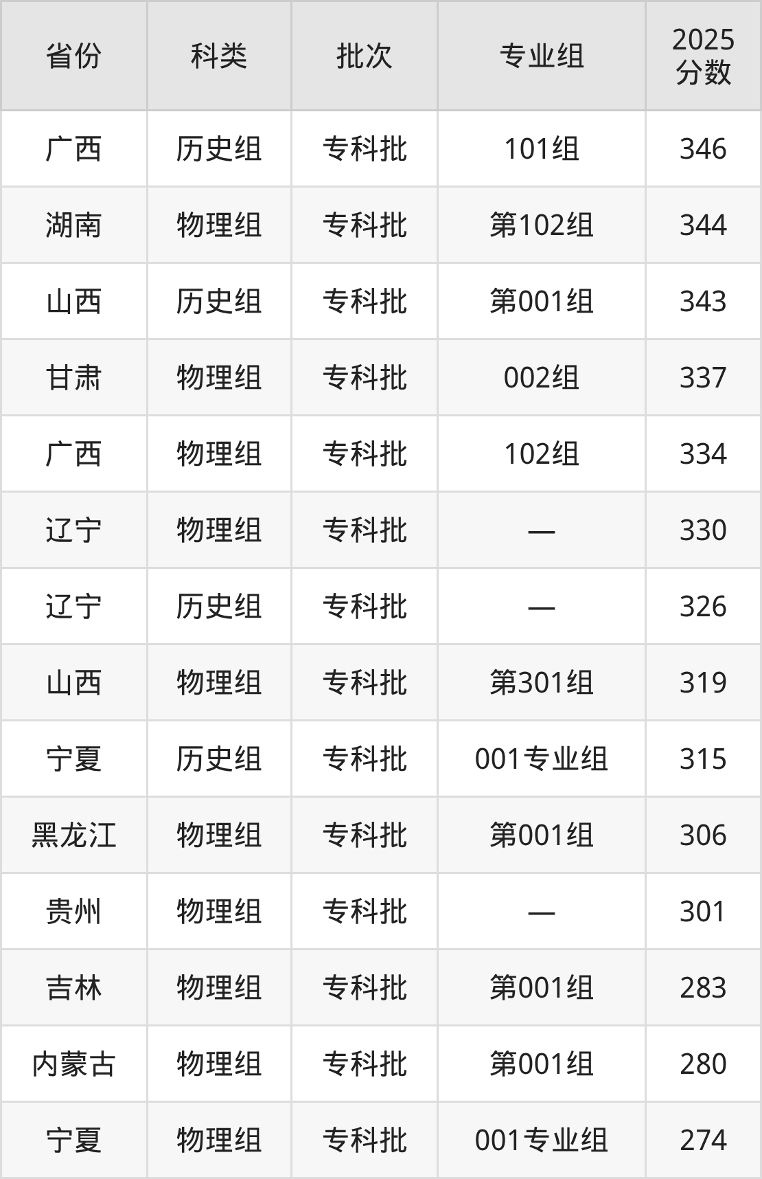 而江西地区历史组考生的分数门槛最高,2025年云南国土资源职业学院第101组在江西招生最低分为421分,考生至少要超专科线131分才有可能被录取。