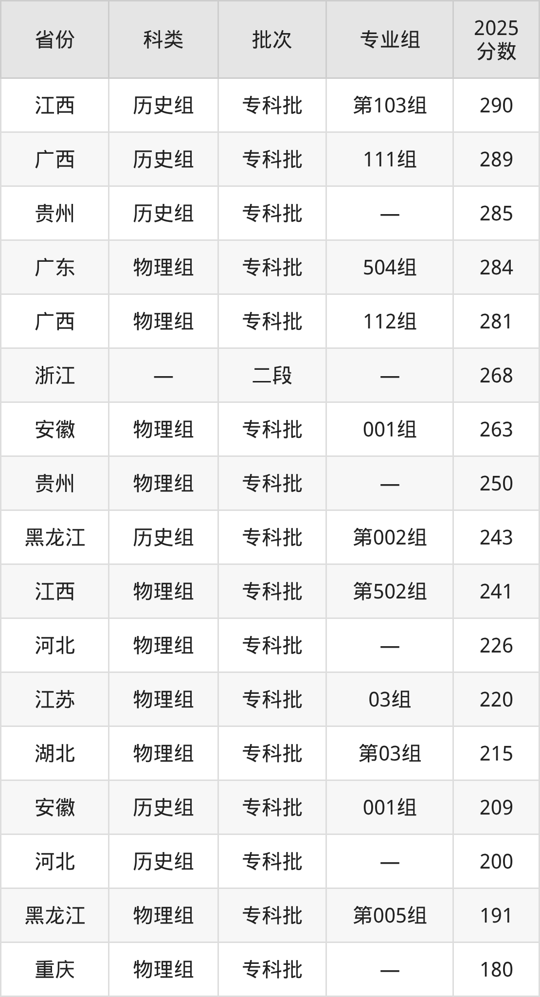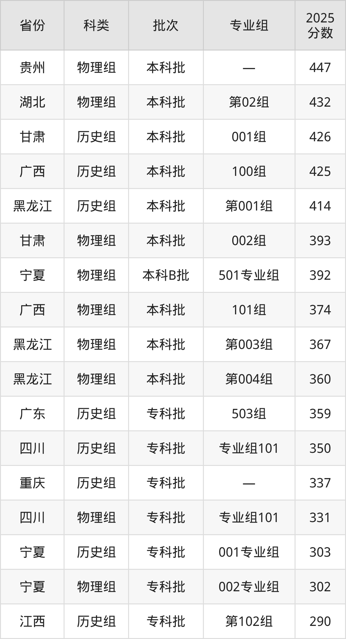 下面是云南工商学院2025年在全国各省的录取分数线一览表,供参考: