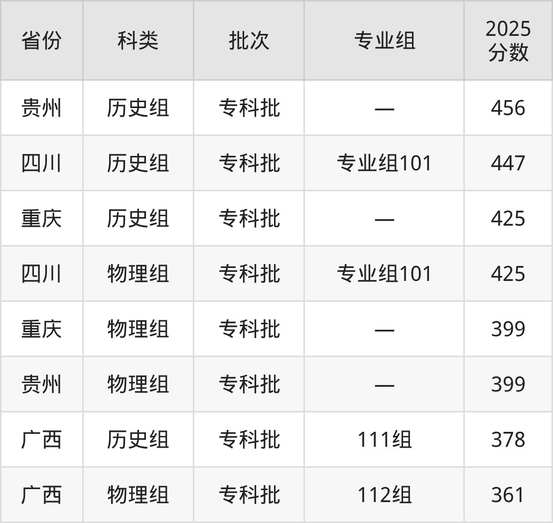 而贵州地区历史组考生的分数门槛最高,2025年云南司法警官职业学院在贵州招生最低分为456分,考生至少要超专科线276分才有可能被录取。