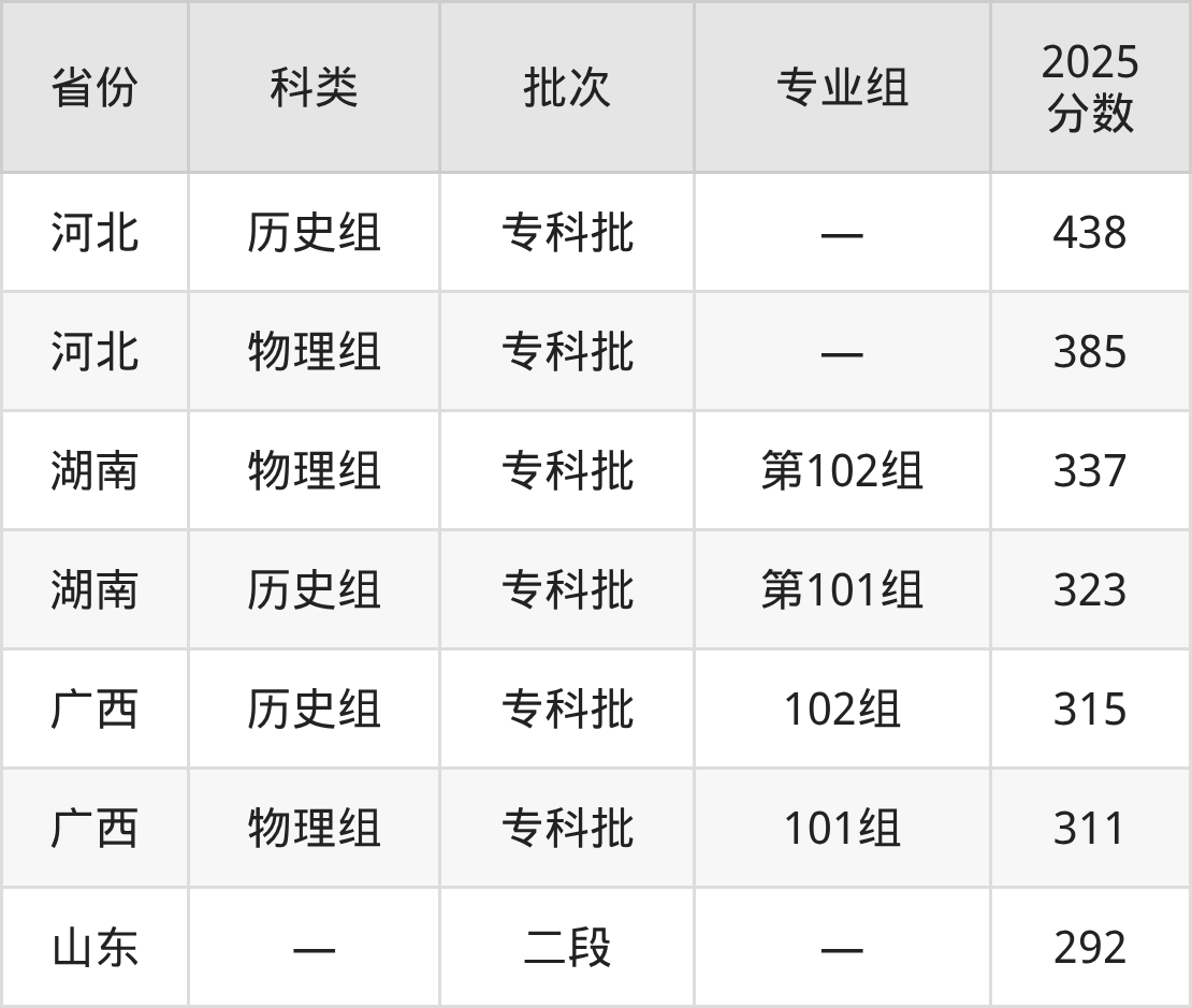 而河北地区历史组考生的分数门槛最高,2025年菏泽职业学院在河北招生最低分为438分,考生至少要超专科线238分才有可能被录取。