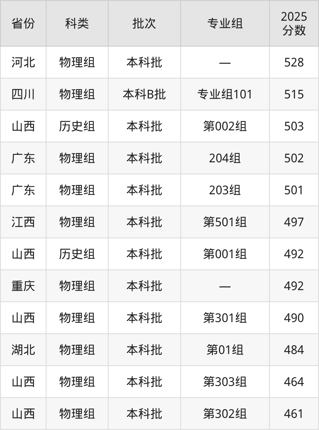 而河北地区物理组考生的分数门槛最高,2025年山西电子科技学院在河北招生最低分为528分,考生至少要超本科线69分才有可能被录取。