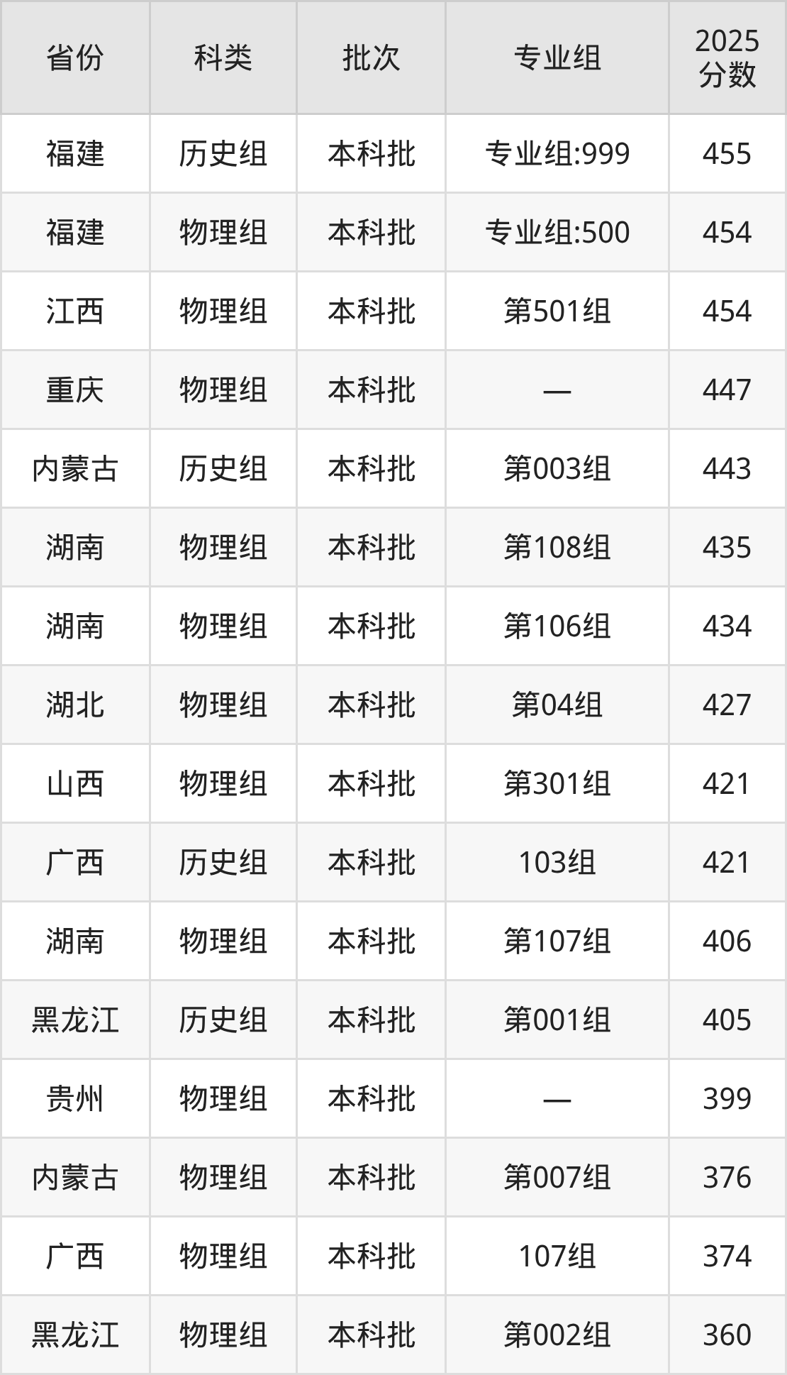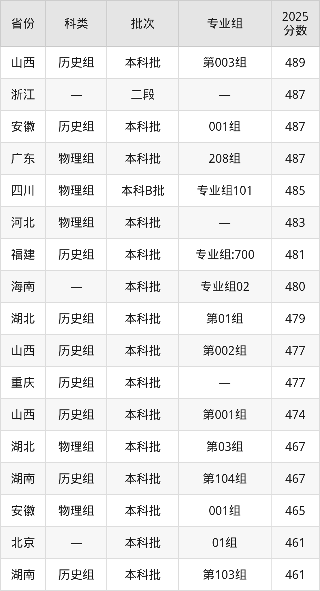 2025年常德学院在全国普通批次招生的录取分数范围位于360~553分之间,其中省内分数范围为406分~467分,历史组最低分专业组为“第103组”,考生461分即可报考,物理组最低分专业组为“第107组”,考生406分即可报考。